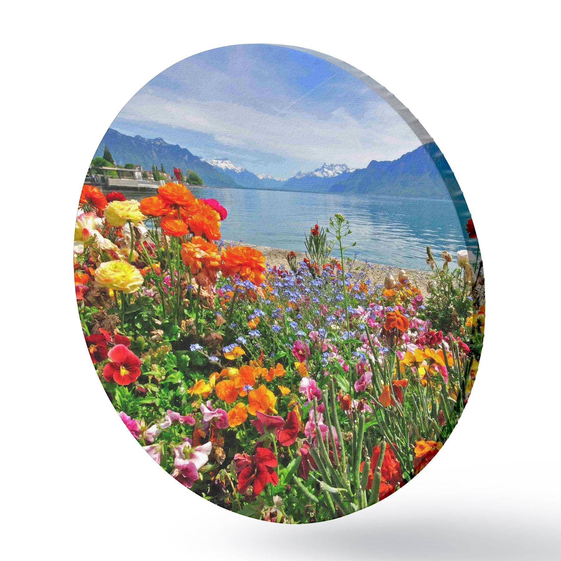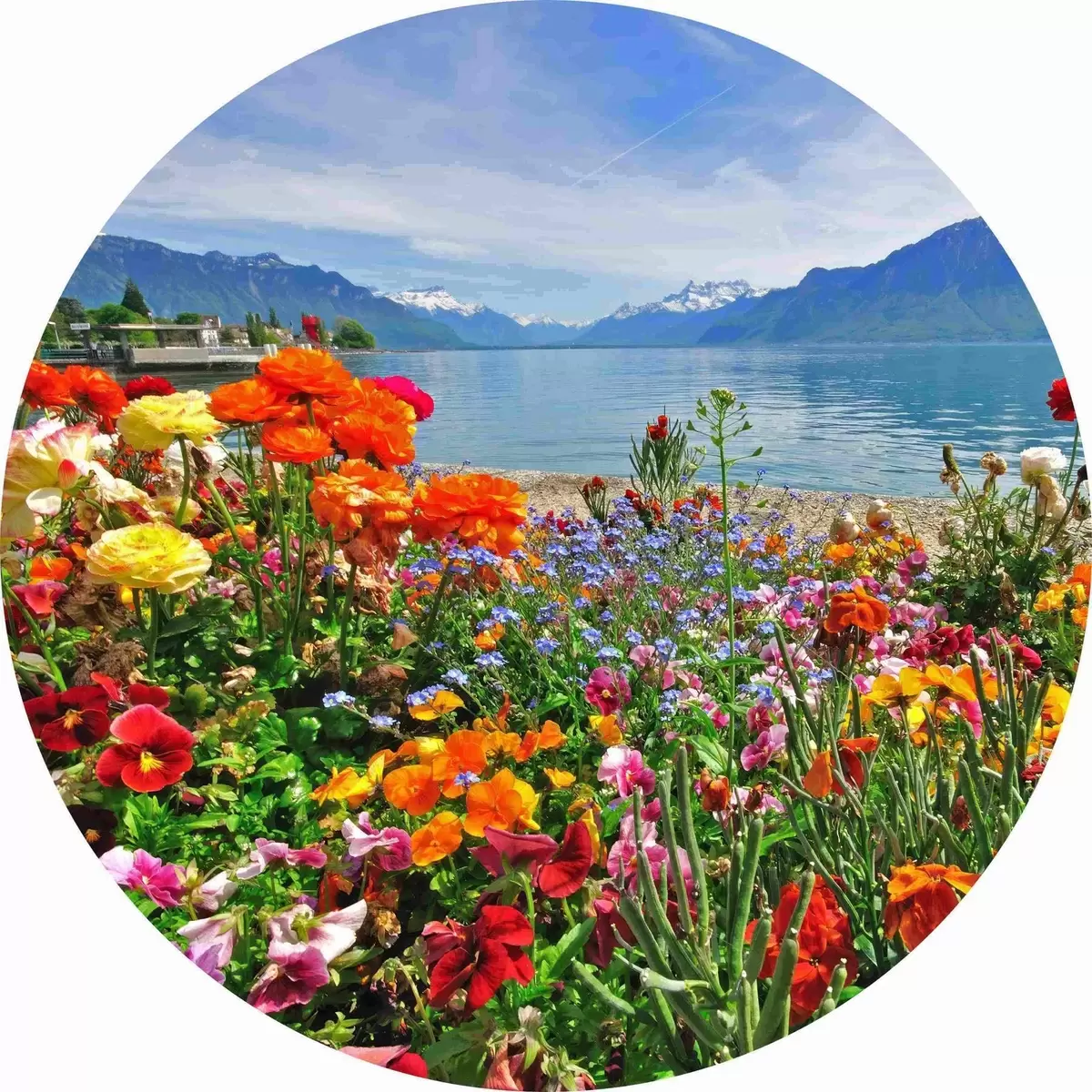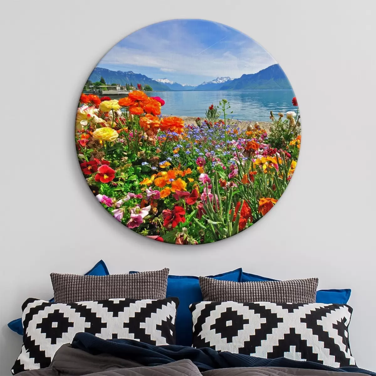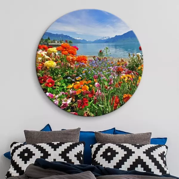 Apaļas gleznas Ūdens, debesis un ziedi r00006