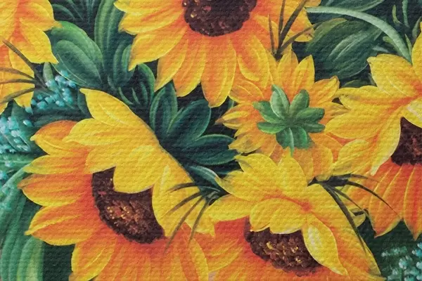 Smalkais diegu pinums uz šī audekla atgādina profesionālu mākslinieku audeklu virsmu.