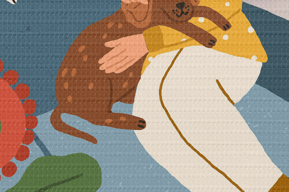 Lai izstieptu audeklu uz nestuvēm, nebojājot attēlu, mēs izmantojam spoguļattēlu.