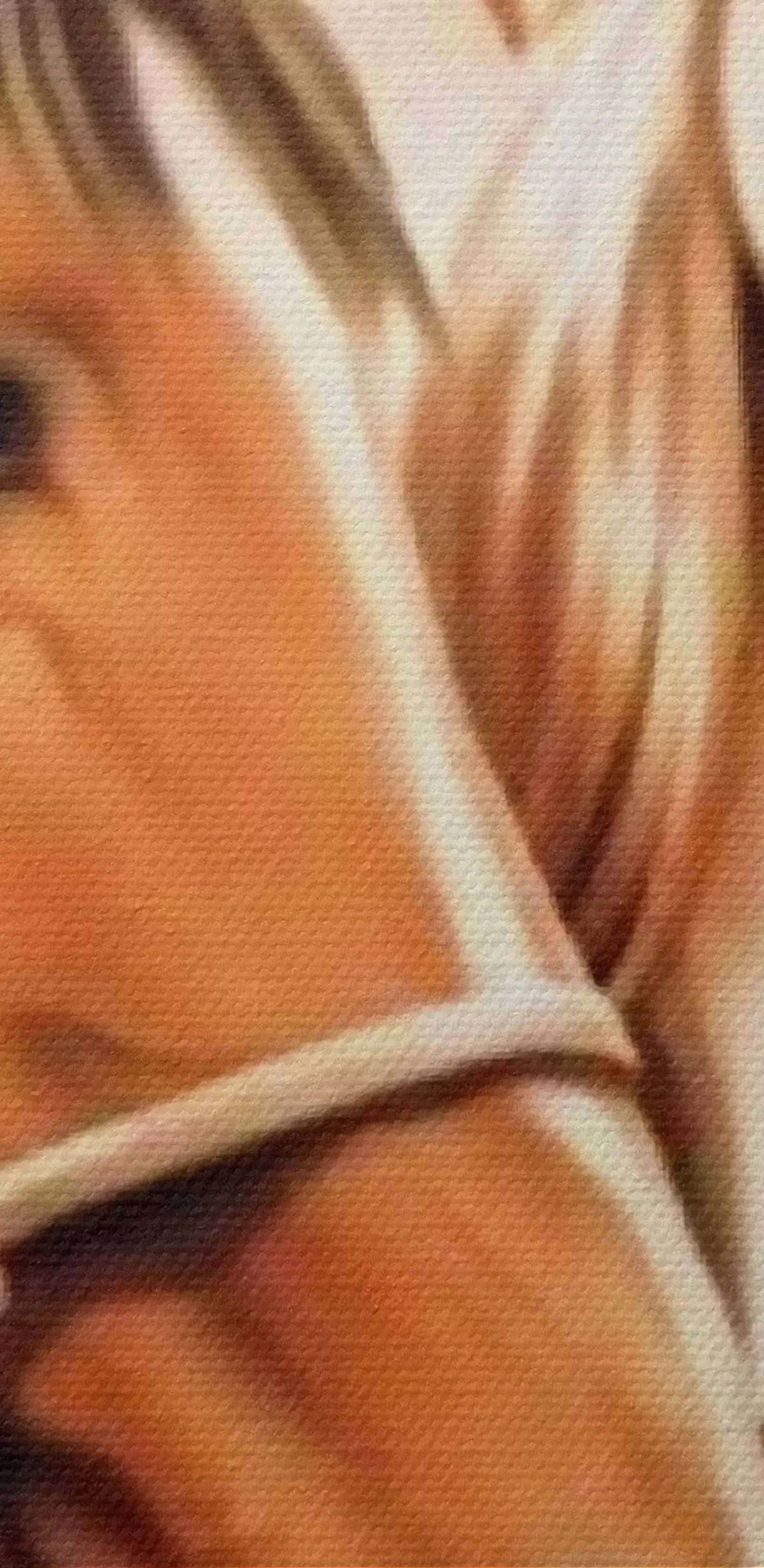 Smalkais diegu pinums uz šī audekla atgādina profesionālu mākslinieku audeklu virsmu.