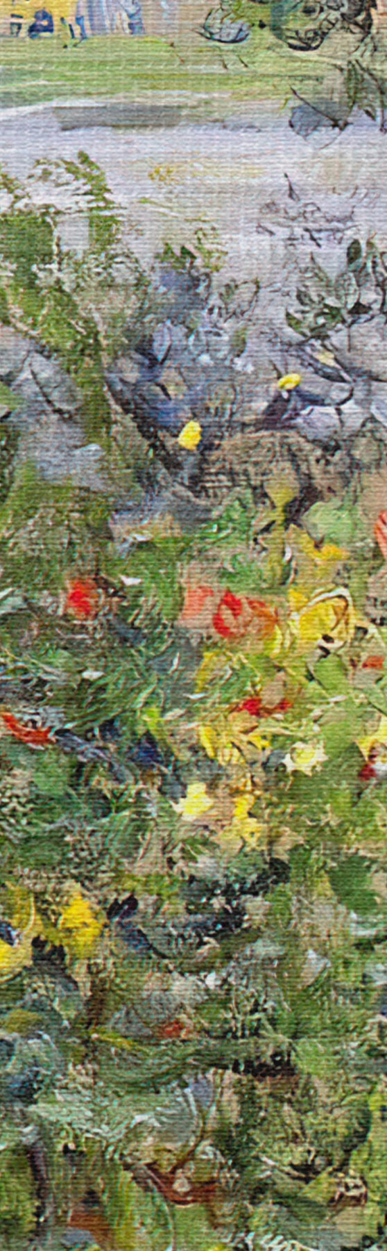 Apaļas gleznas Spilgtas puķes pie klusā ezera r04136