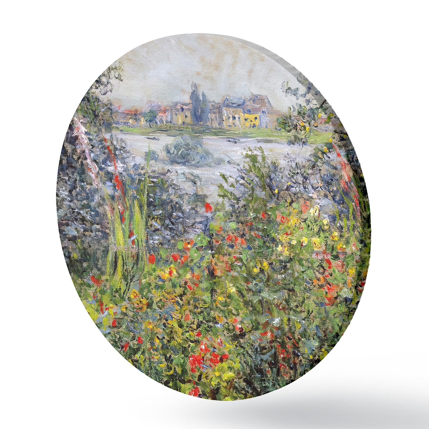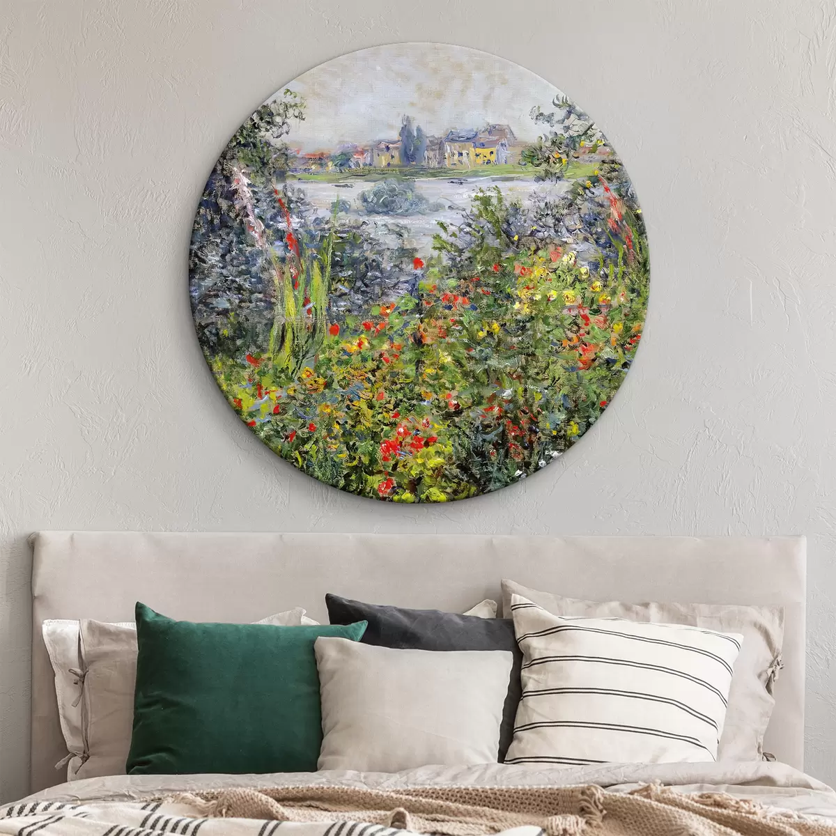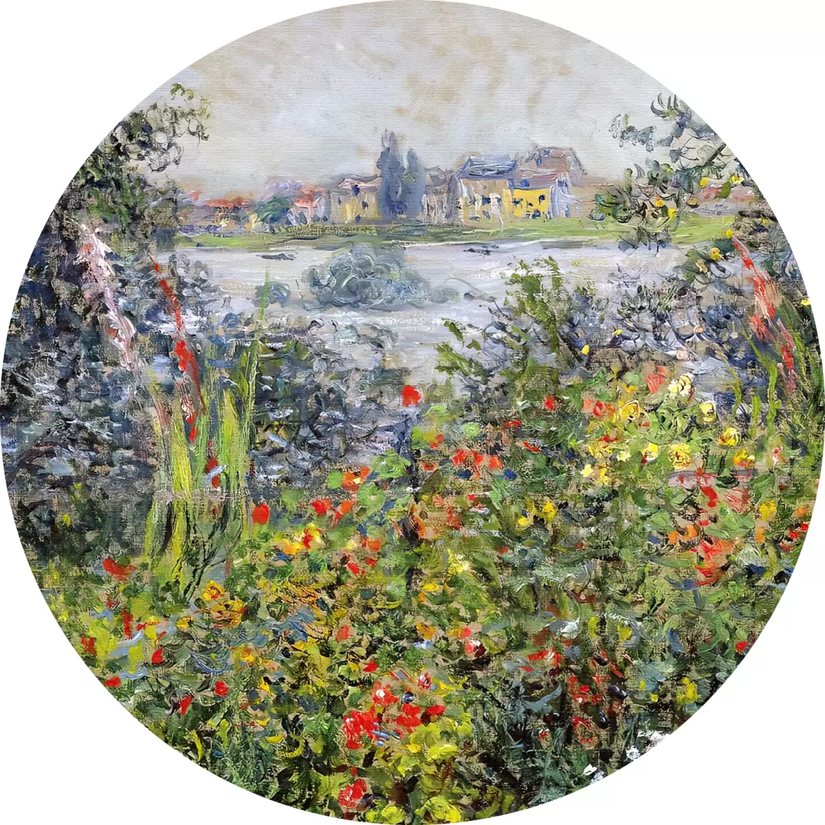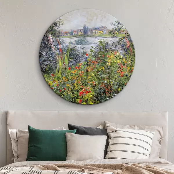 Apaļas gleznas Spilgtas puķes pie klusā ezera r04136