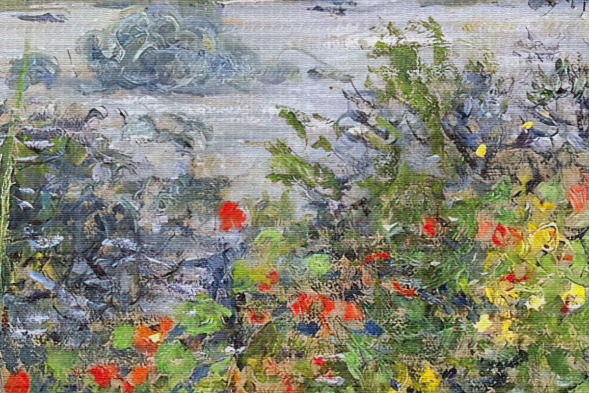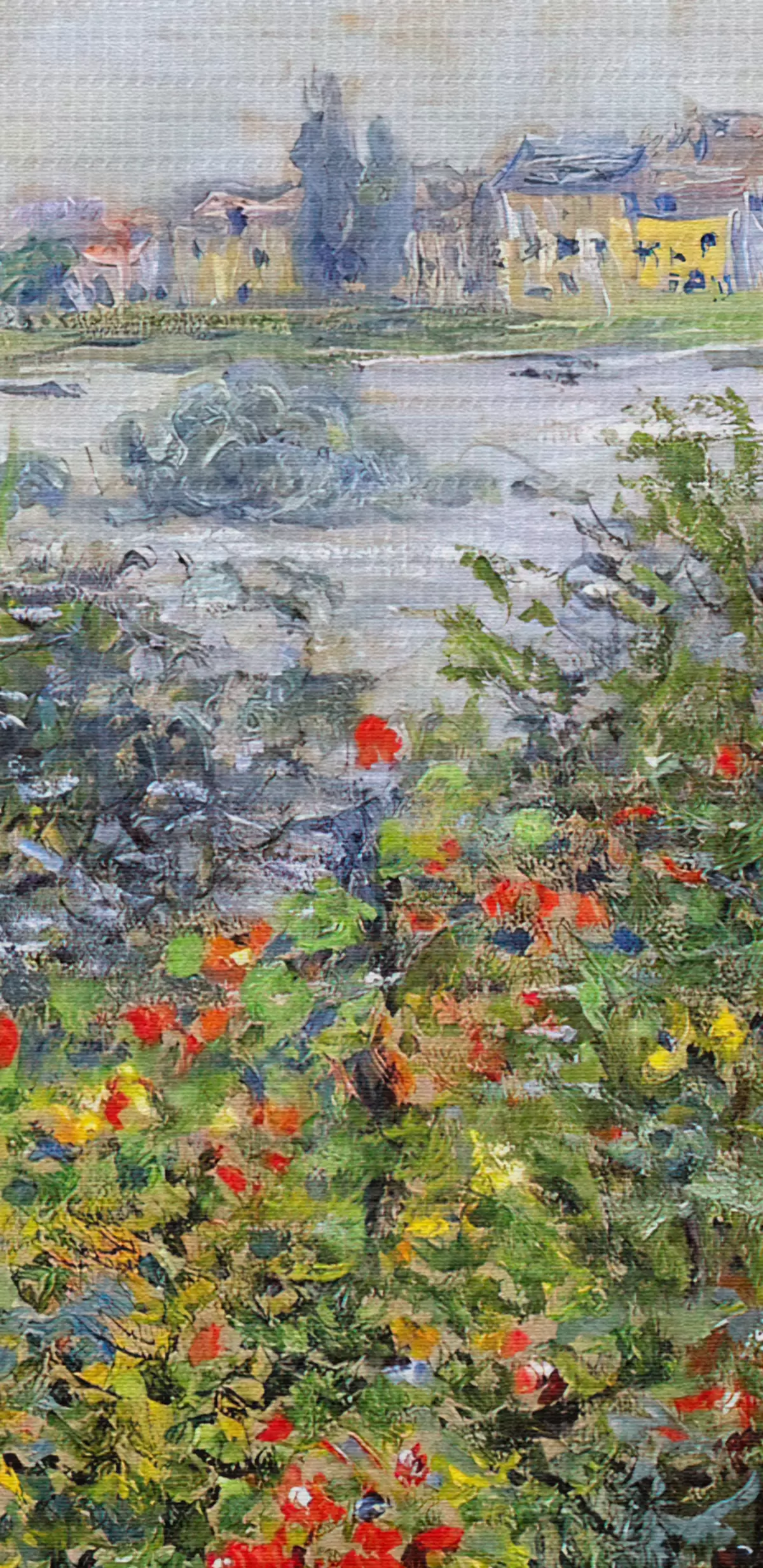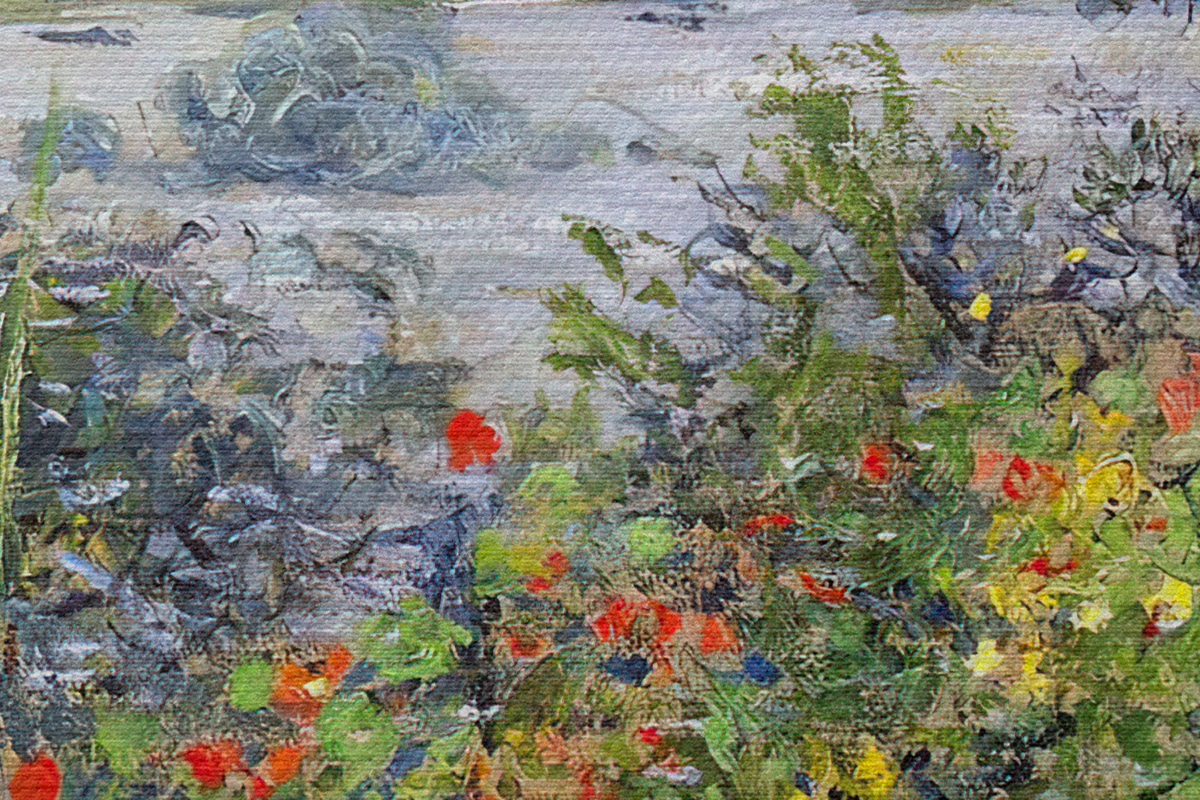 Smalkais diegu pinums uz šī audekla atgādina profesionālu mākslinieku audeklu virsmu.