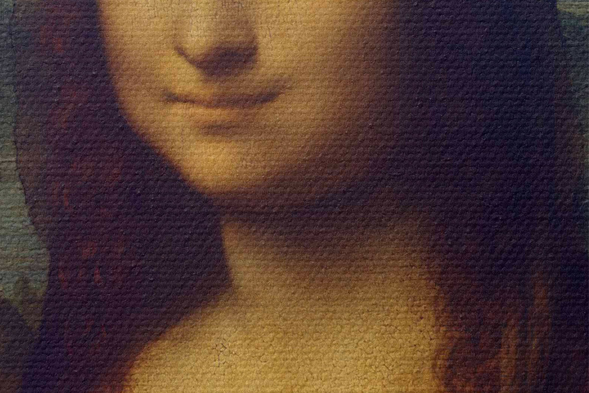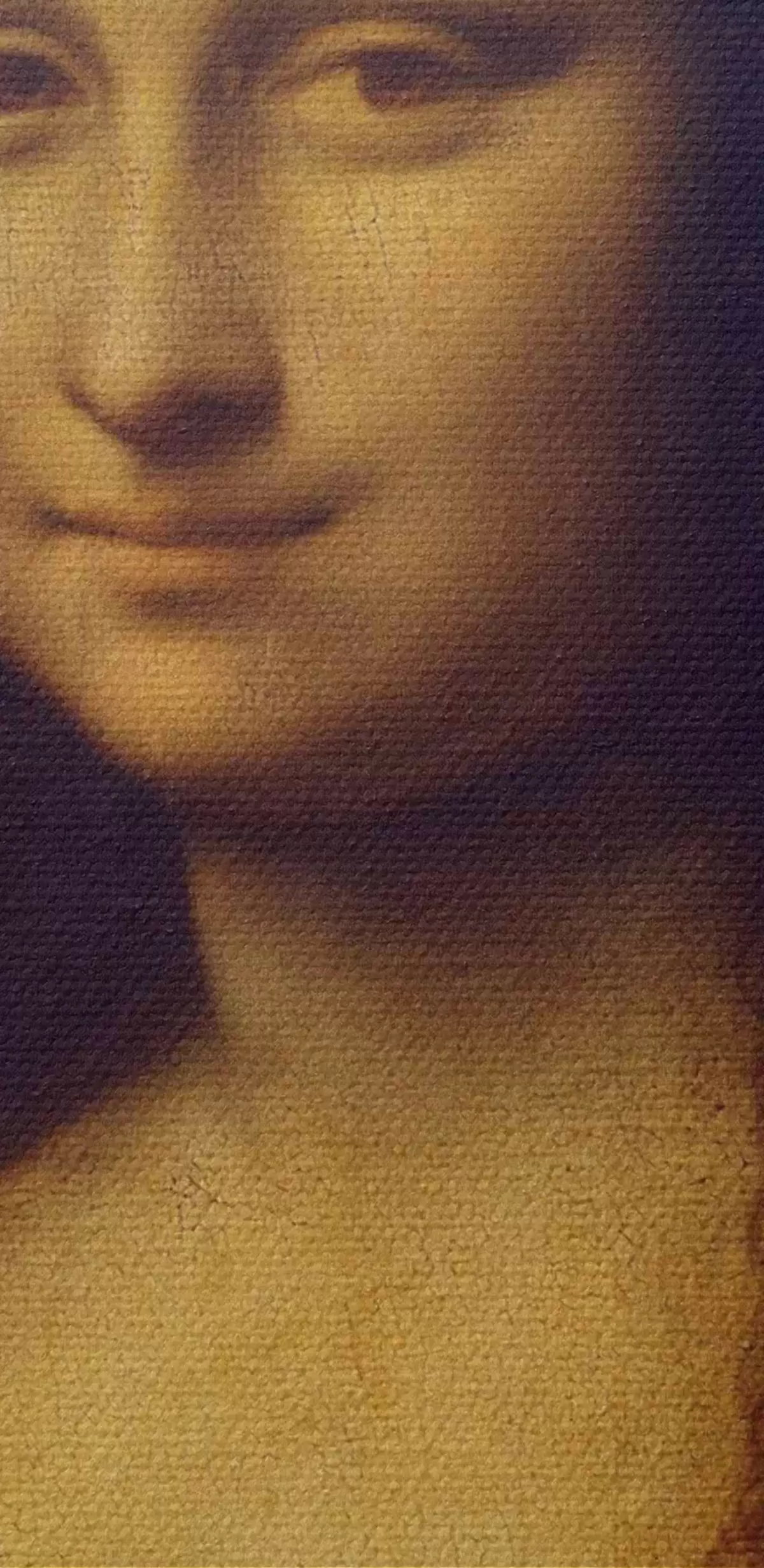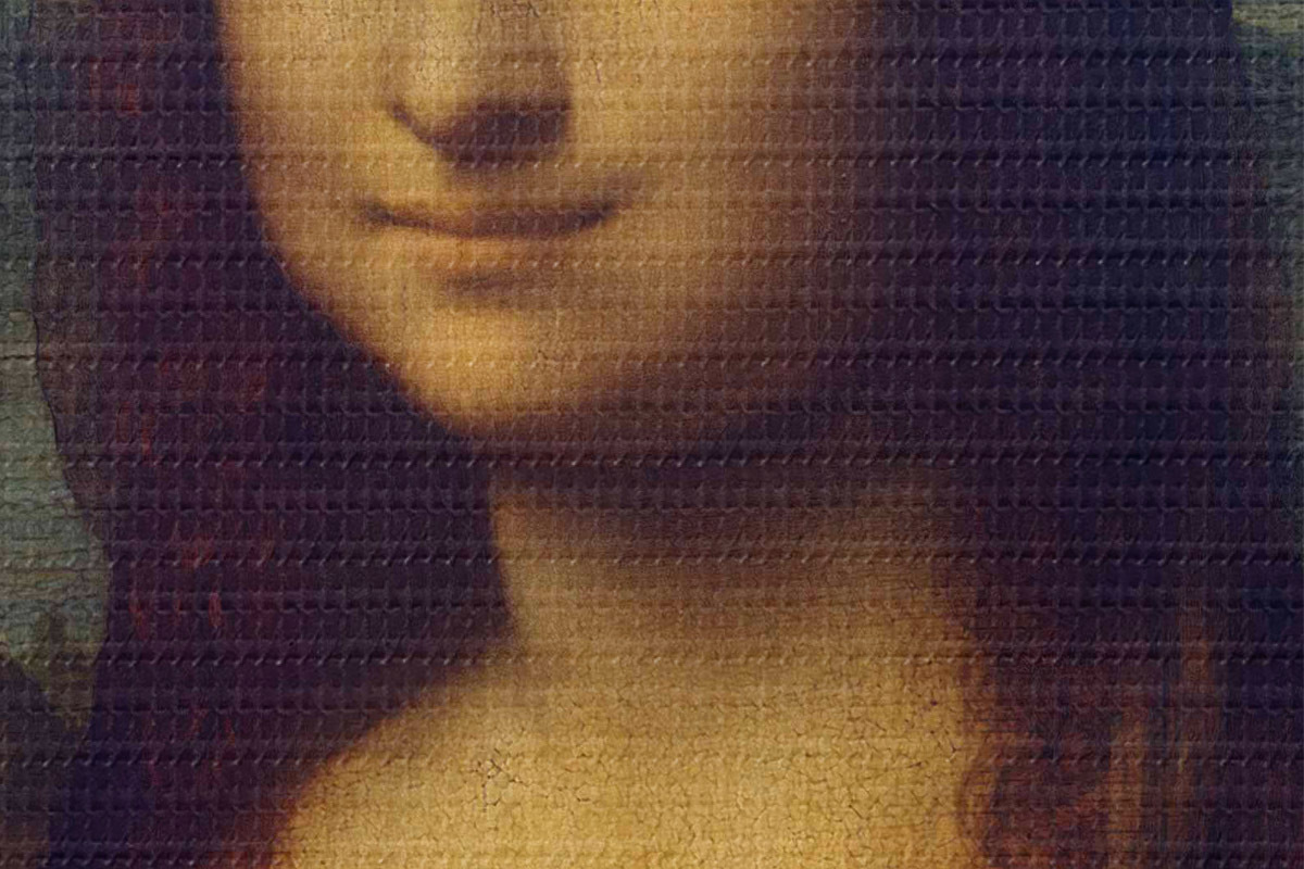 Smalkais diegu pinums uz šī audekla atgādina profesionālu mākslinieku audeklu virsmu.