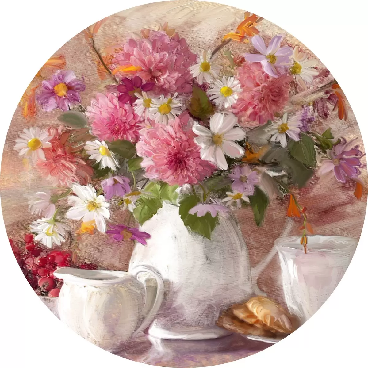 Apaļas gleznas Ziedu, augu un dzērienu trauki r15070