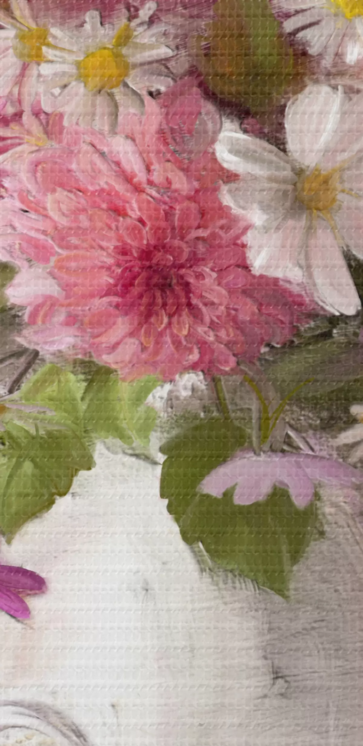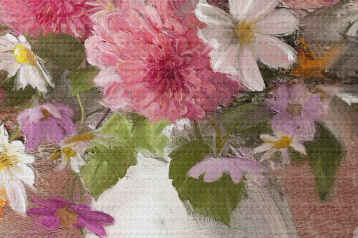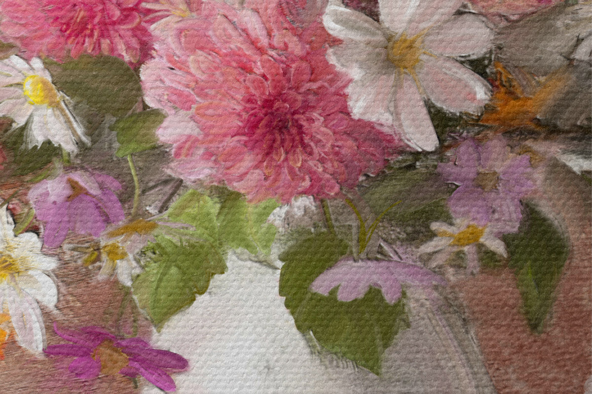 Smalkais diegu pinums uz šī audekla atgādina profesionālu mākslinieku audeklu virsmu.