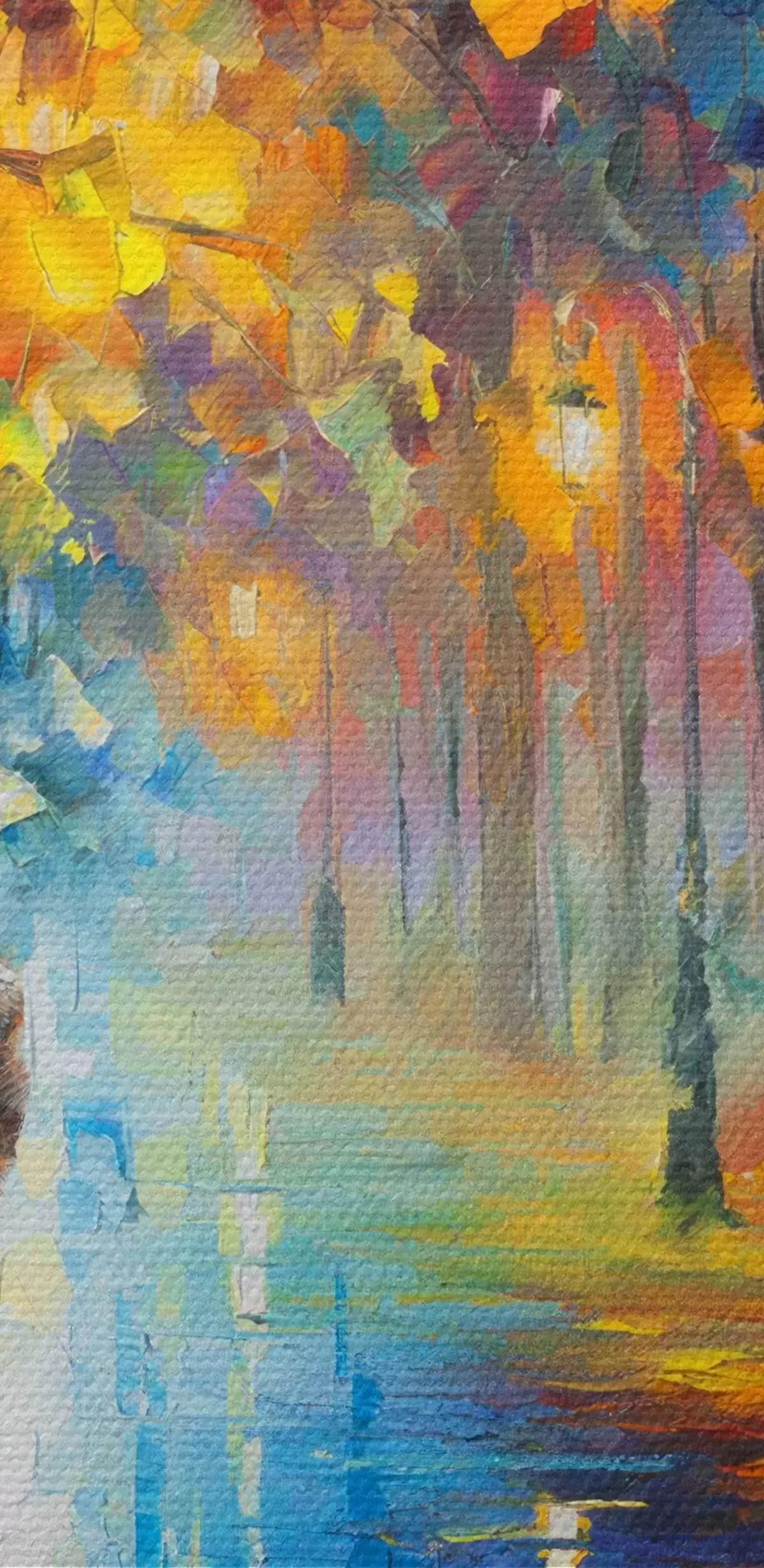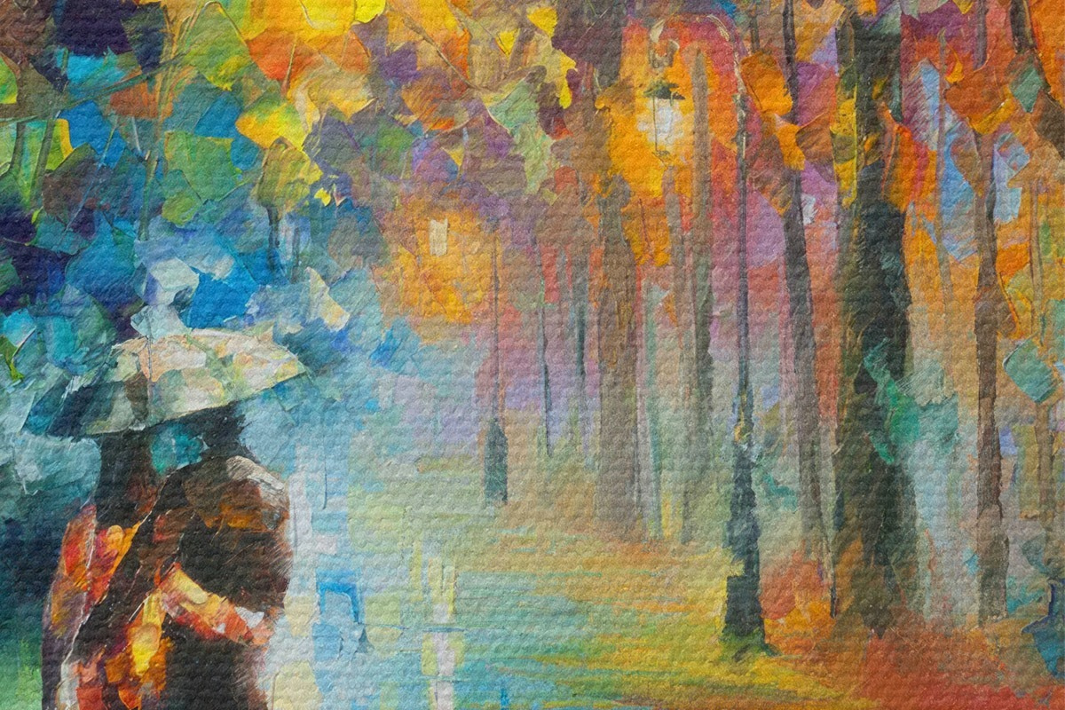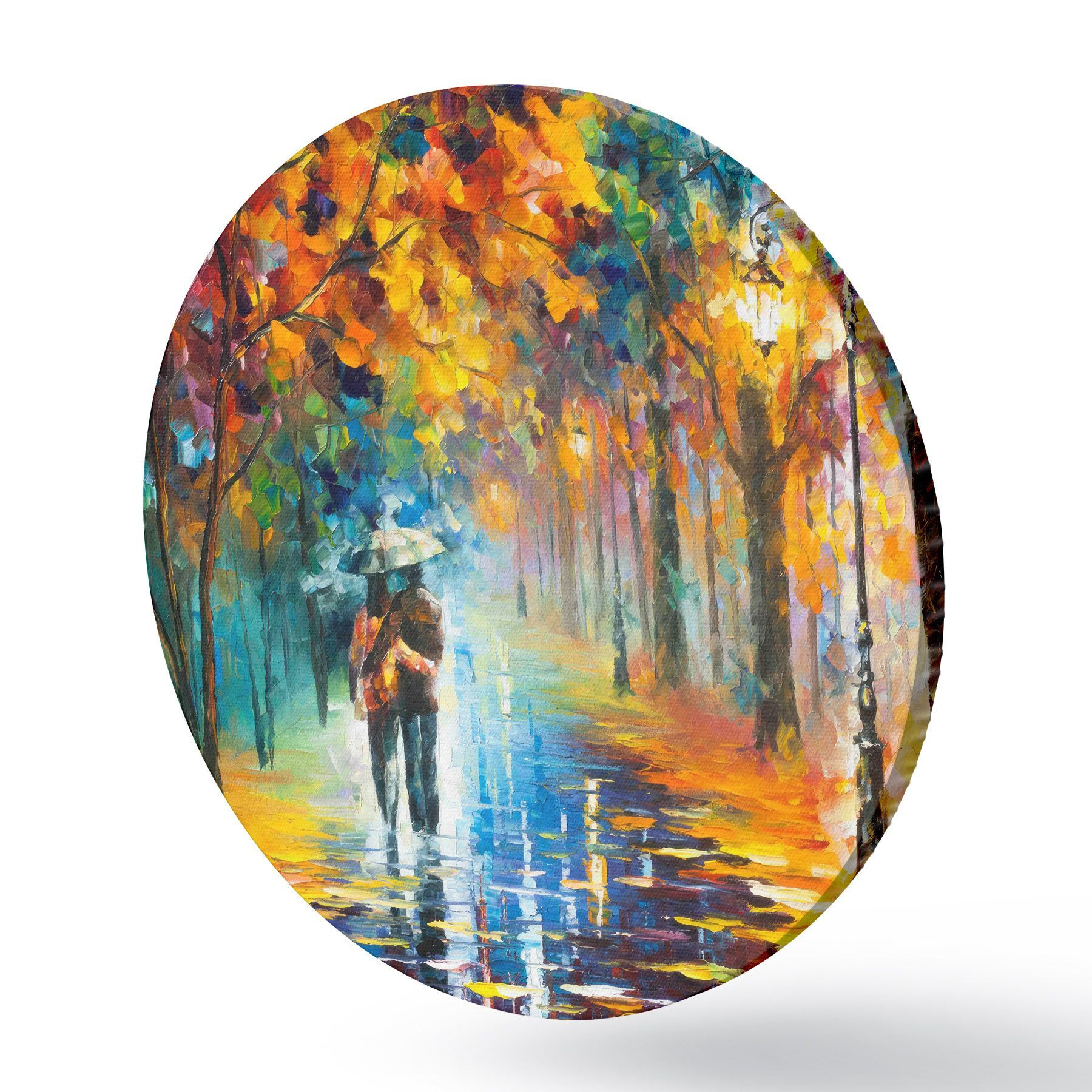 Apaļas gleznas Pāris zem lietussarga, rudens r15186