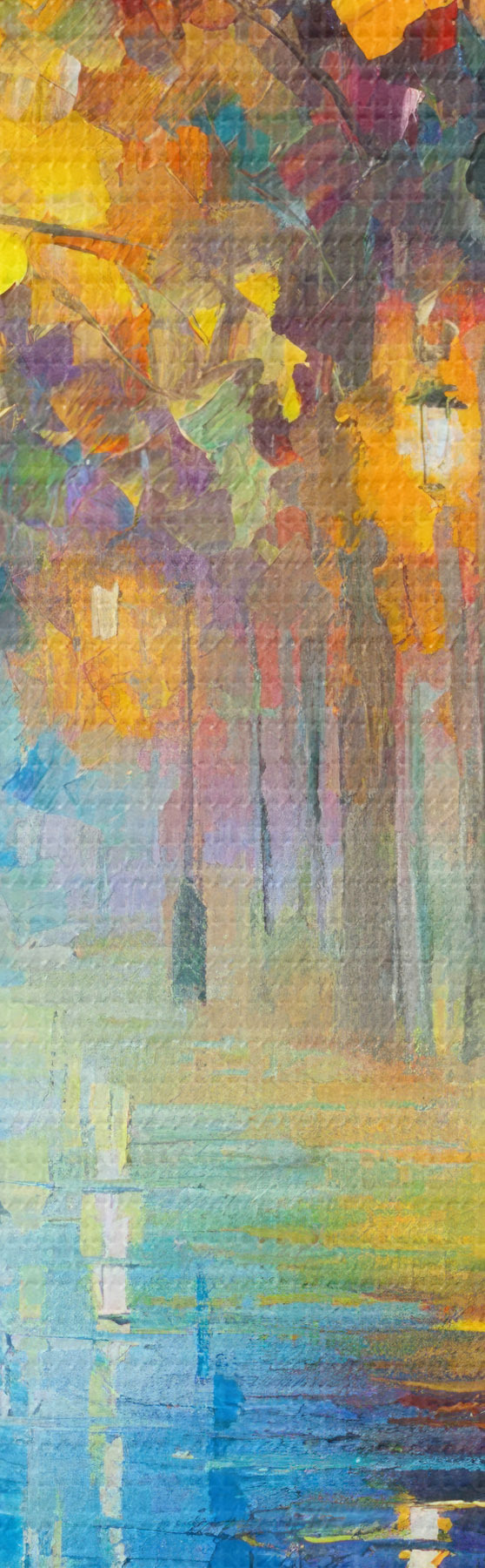 Smalkais diegu pinums uz šī audekla atgādina profesionālu mākslinieku audeklu virsmu.