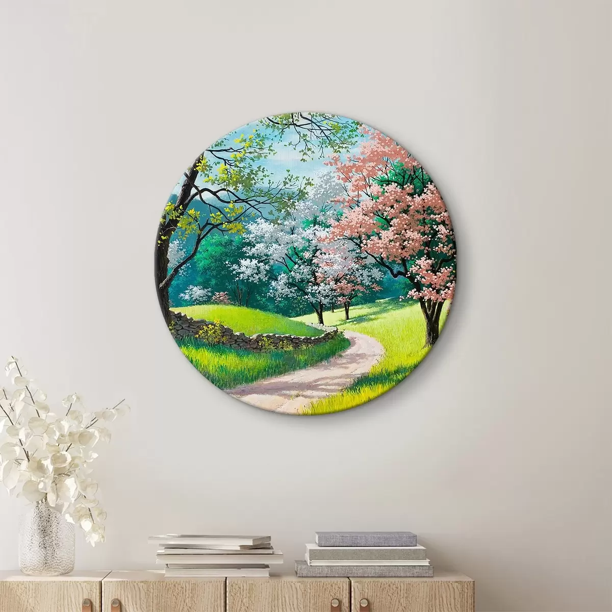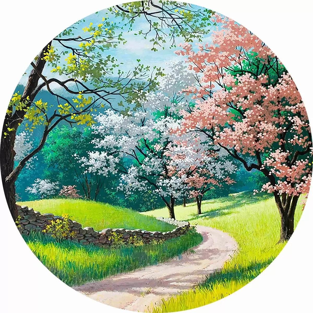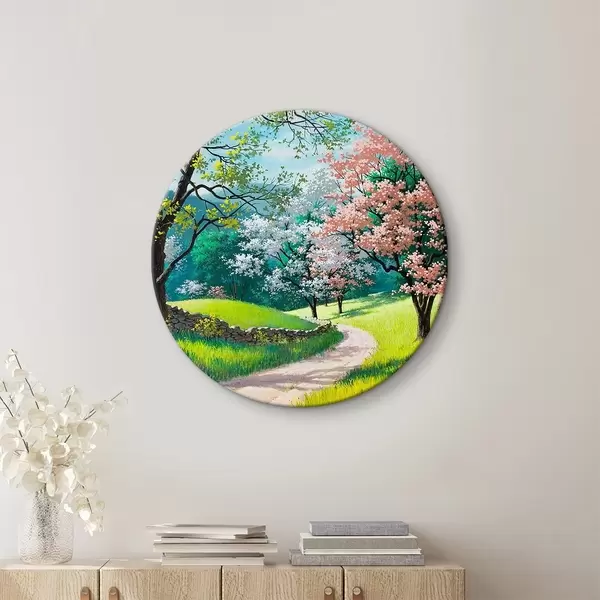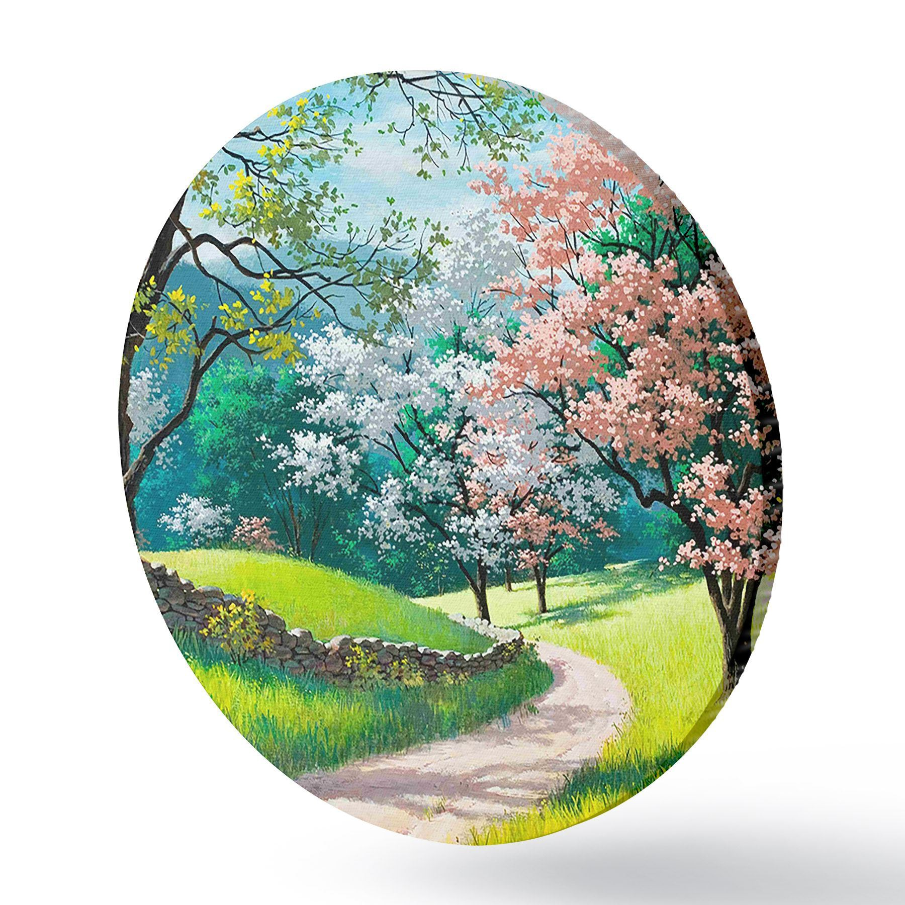 Apaļas gleznas Ziedoši augļu koki, lauku ceļš r15350