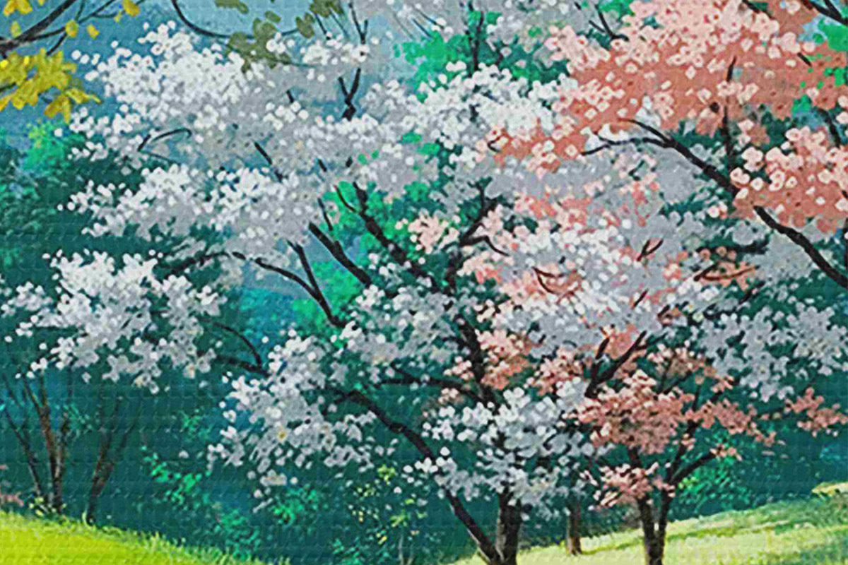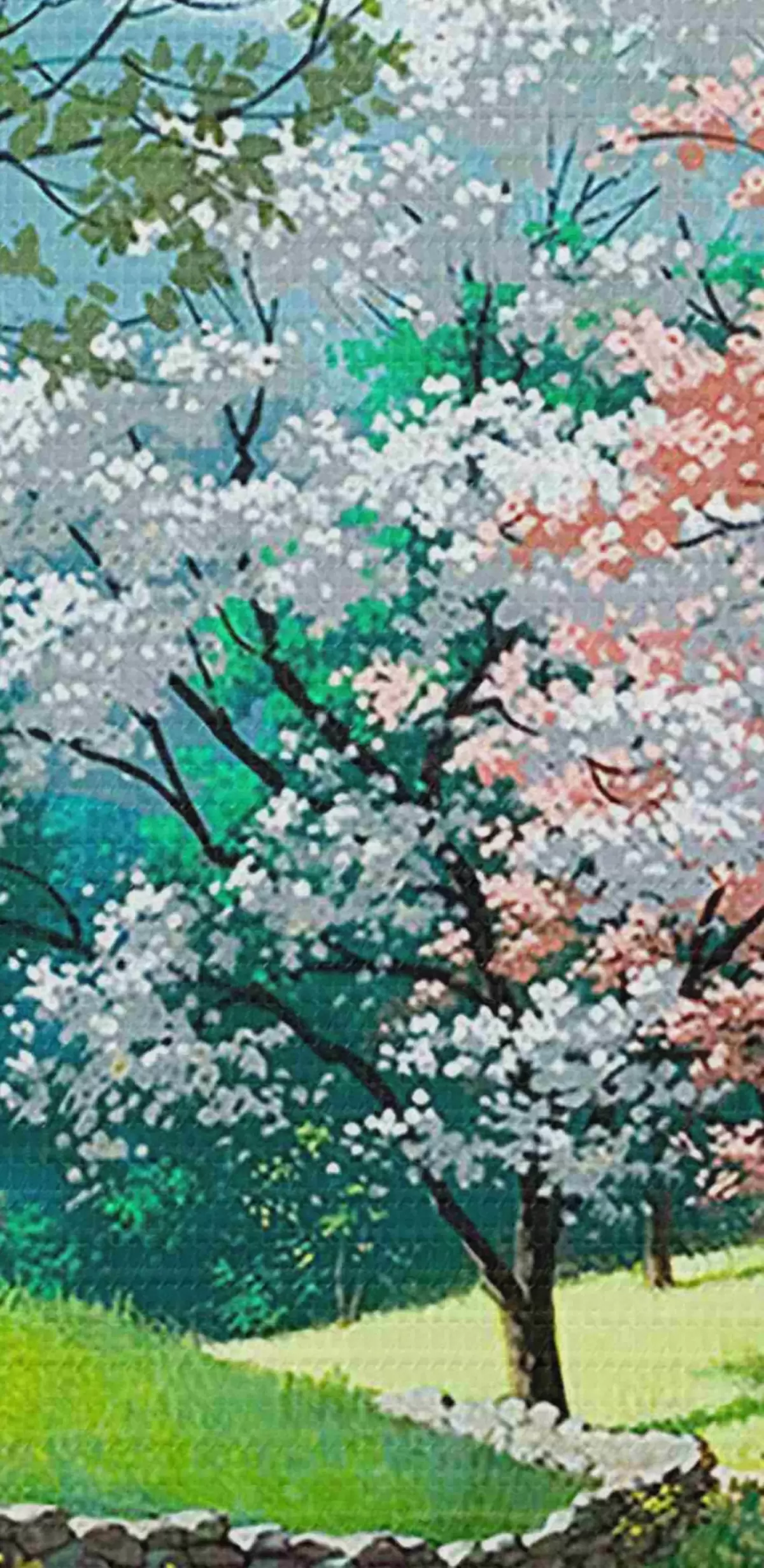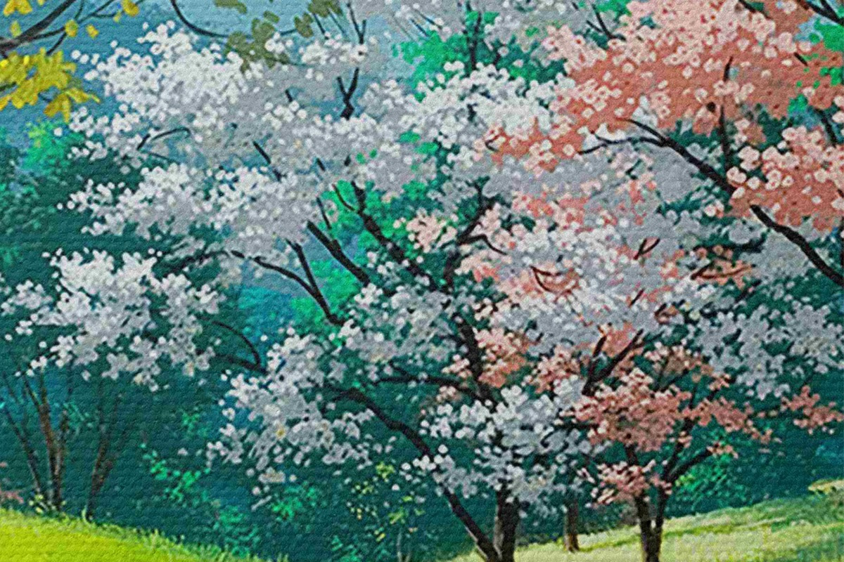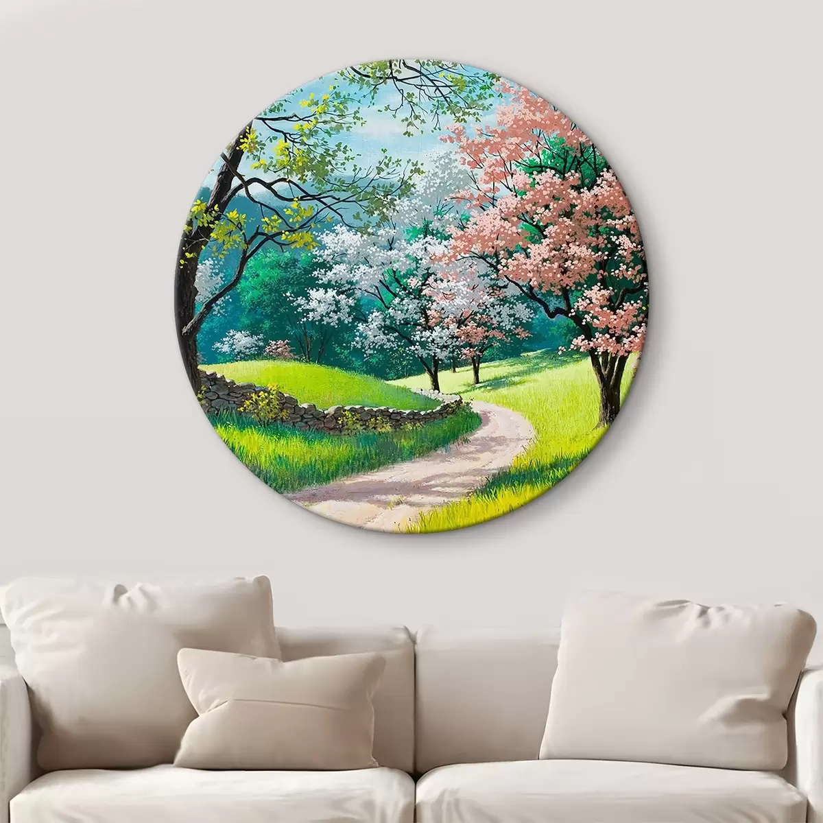 Apaļas gleznas Ziedoši augļu koki, lauku ceļš r15350