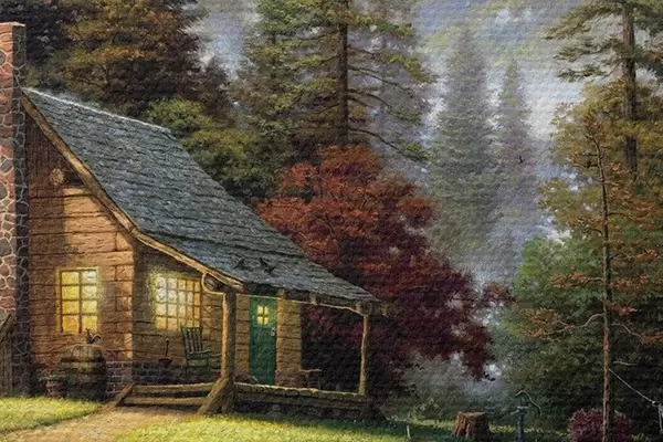 Apaļas gleznas Zvejnieka namiņš mežā pie strauta r15556