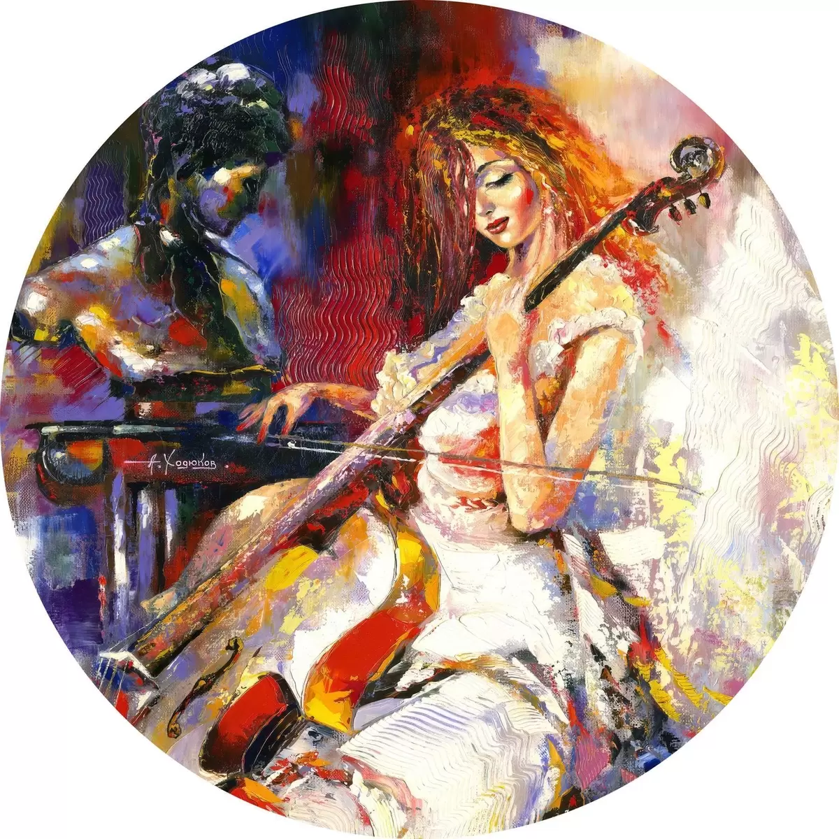 Apaļas gleznas Krāsa, mākslas krāsa un mūzikas instruments r16795