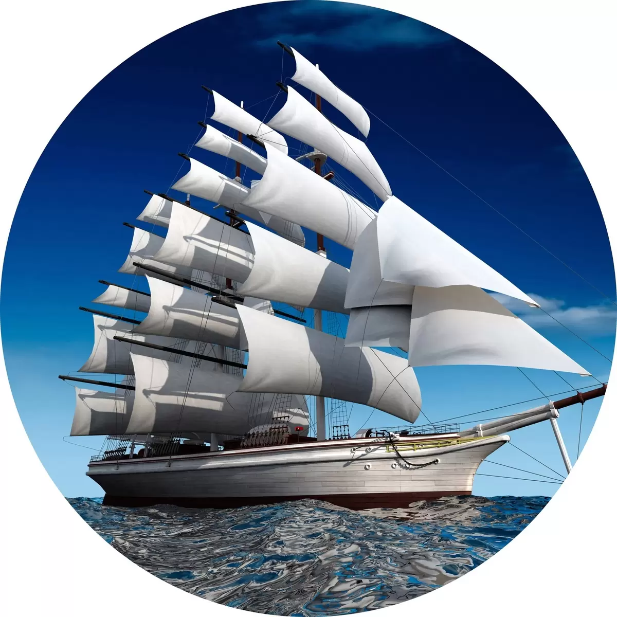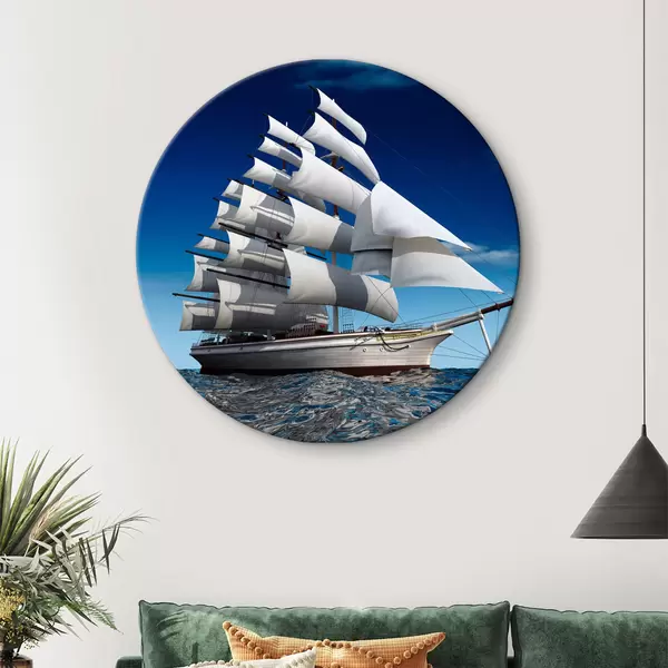 Apaļas gleznas Ūdens, laiva un debesis r18347