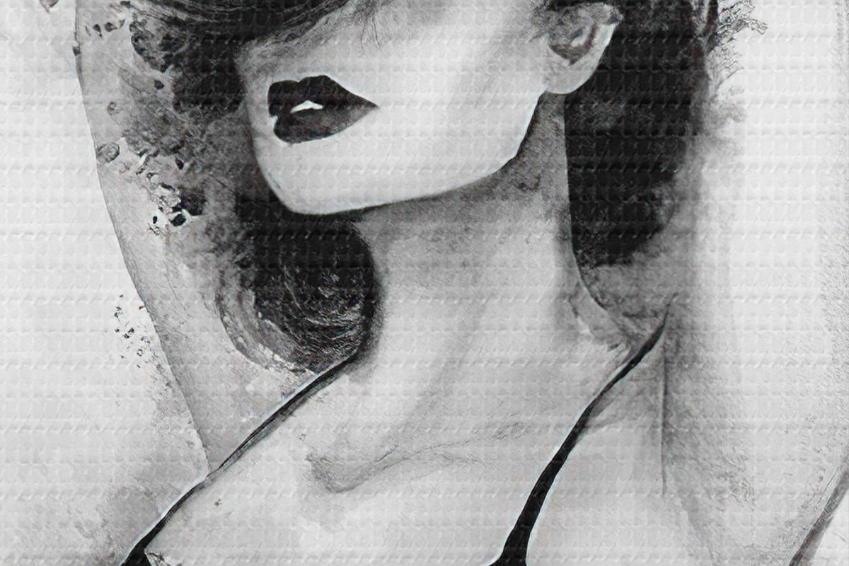Smalkais diegu pinums uz šī audekla atgādina profesionālu mākslinieku audeklu virsmu.