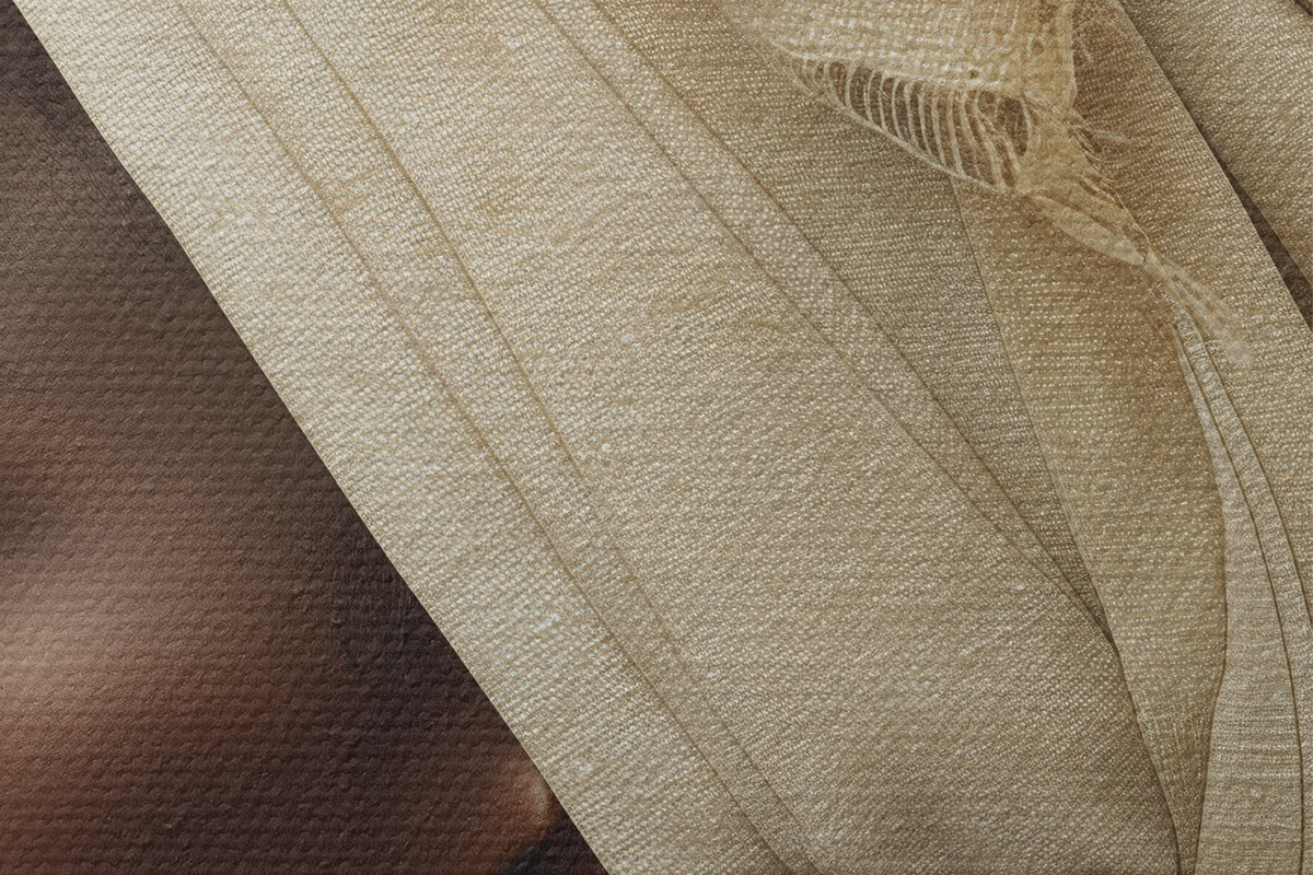 Smalkais diegu pinums uz šī audekla atgādina profesionālu mākslinieku audeklu virsmu.