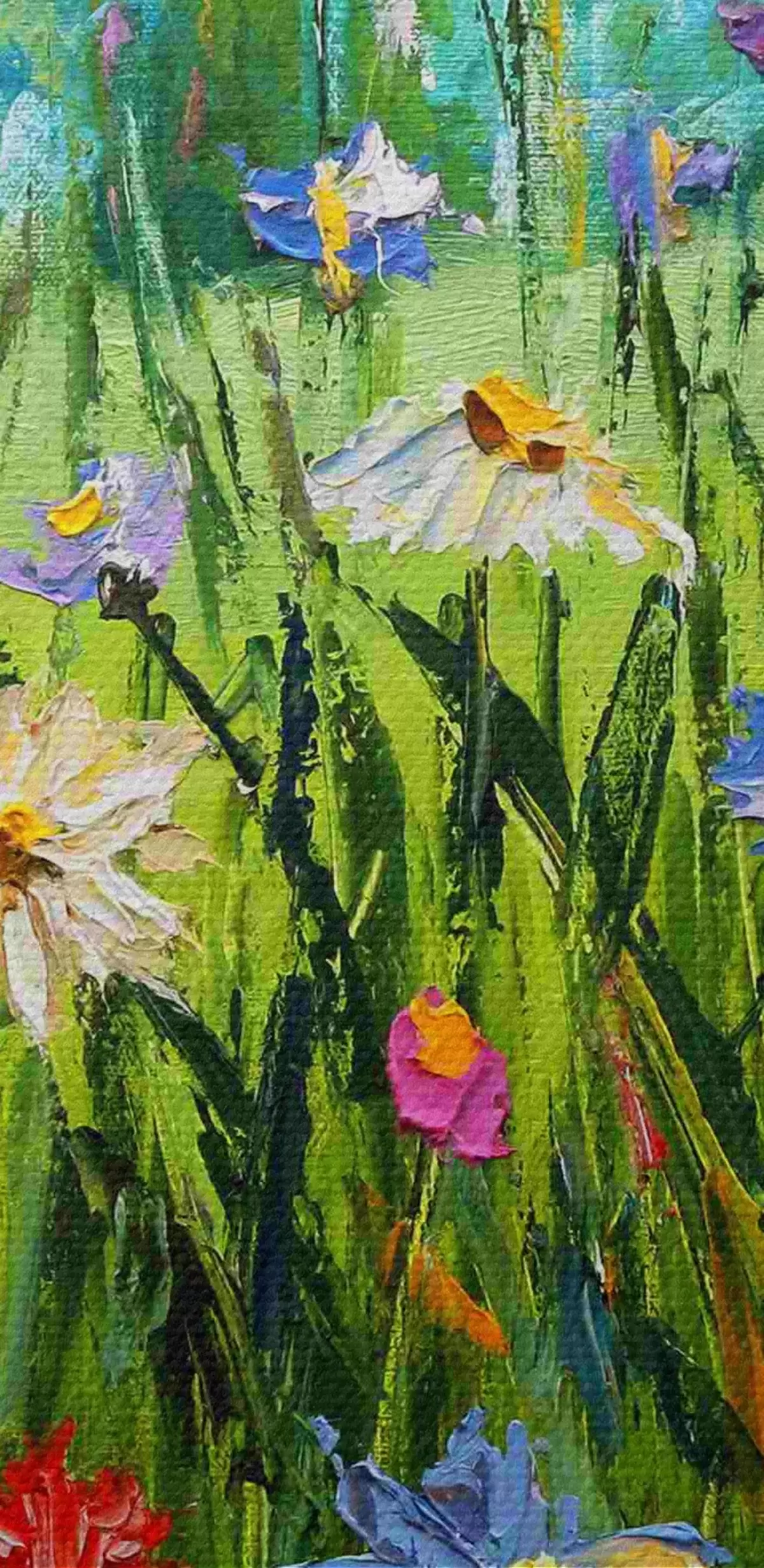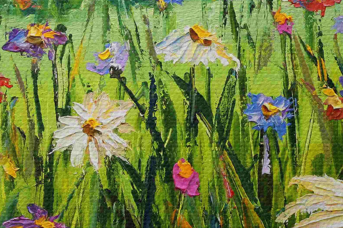 Smalkais diegu pinums uz šī audekla atgādina profesionālu mākslinieku audeklu virsmu.