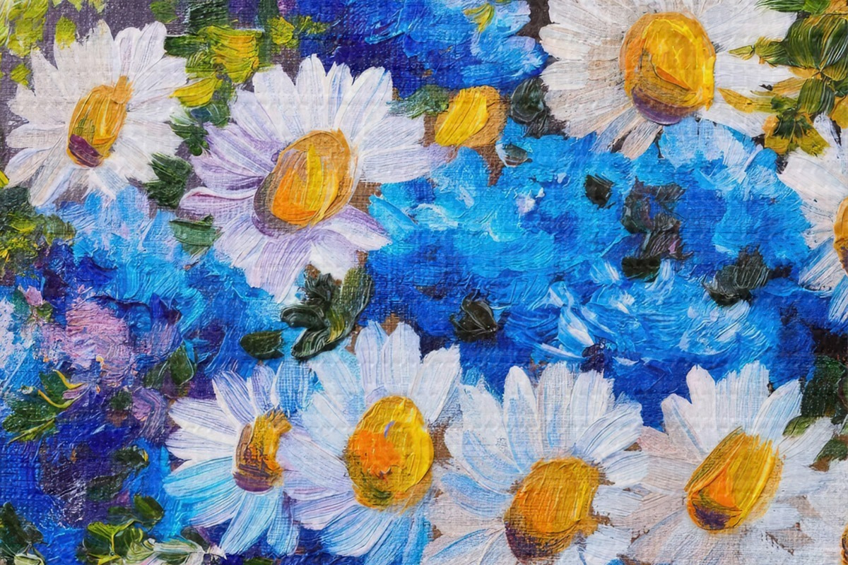 Smalkais diegu pinums uz šī audekla atgādina profesionālu mākslinieku audeklu virsmu.