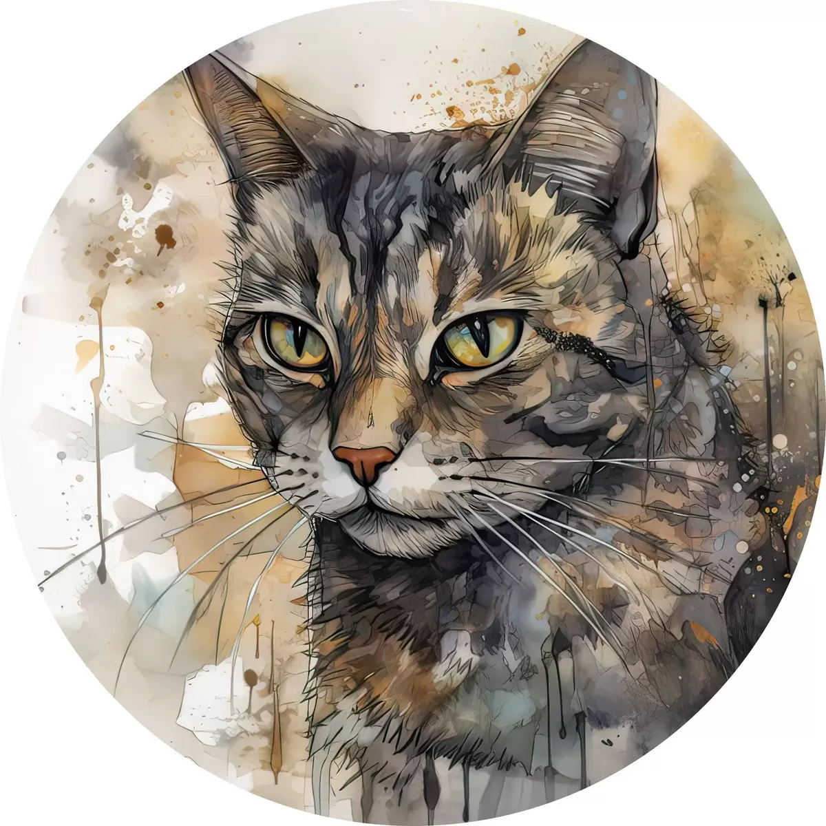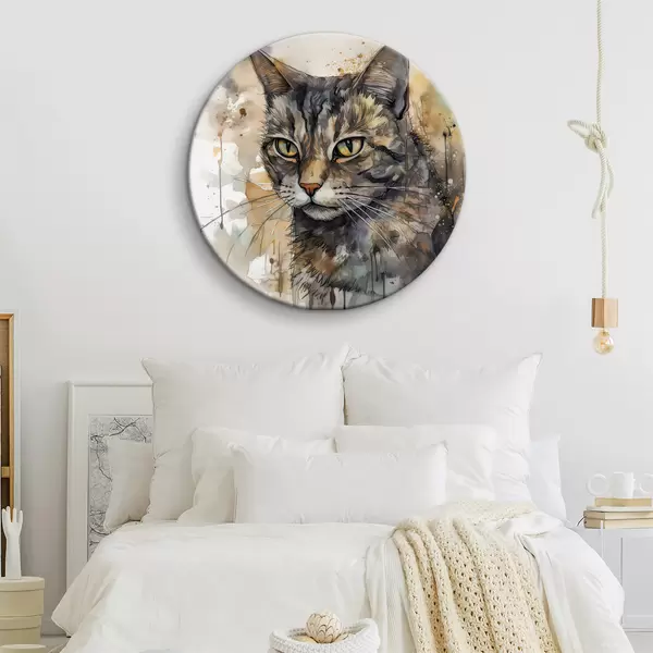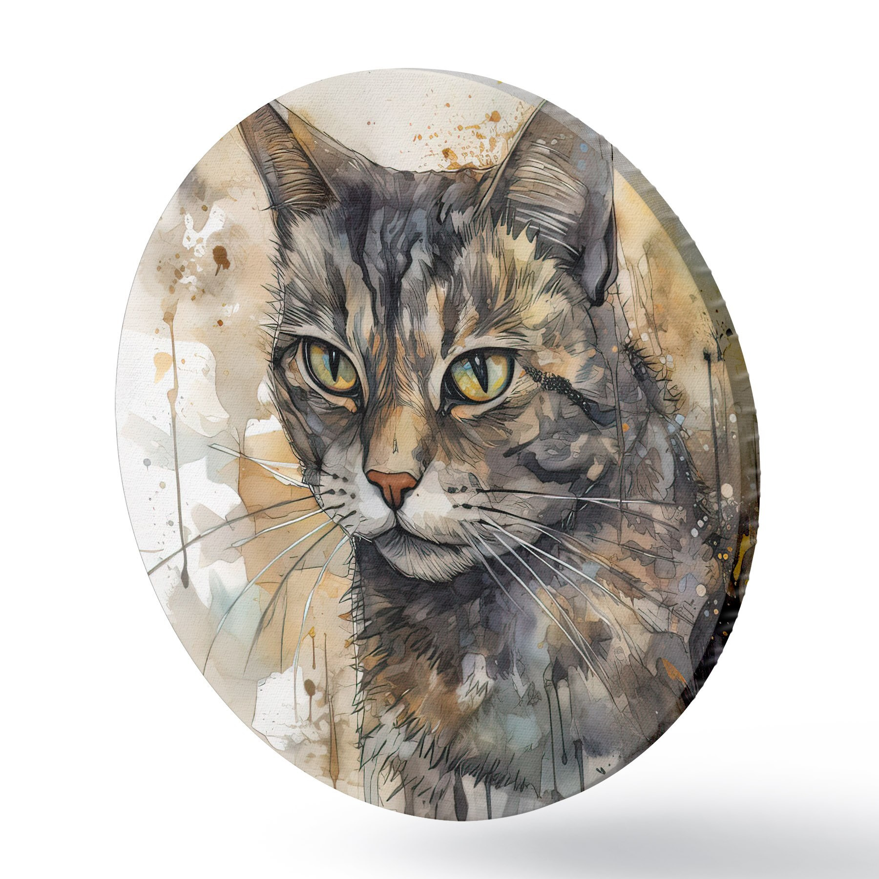 Apaļas gleznas Kaķis, kaķu dzimtas dzīvnieki un krāsas r32299