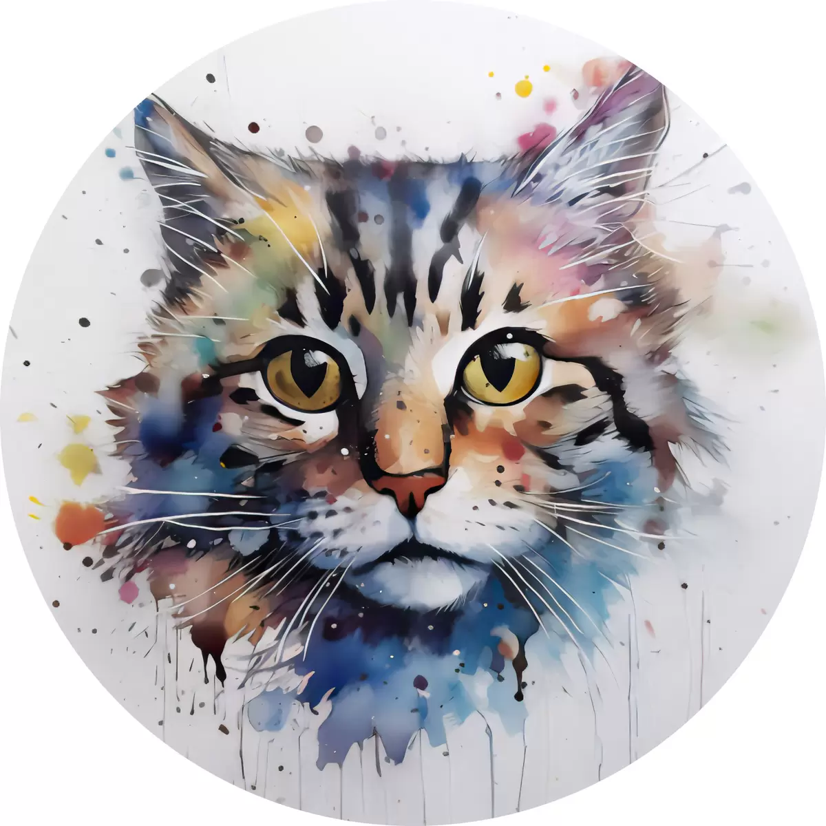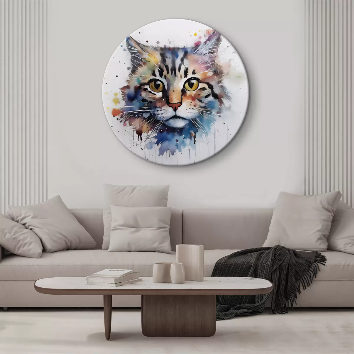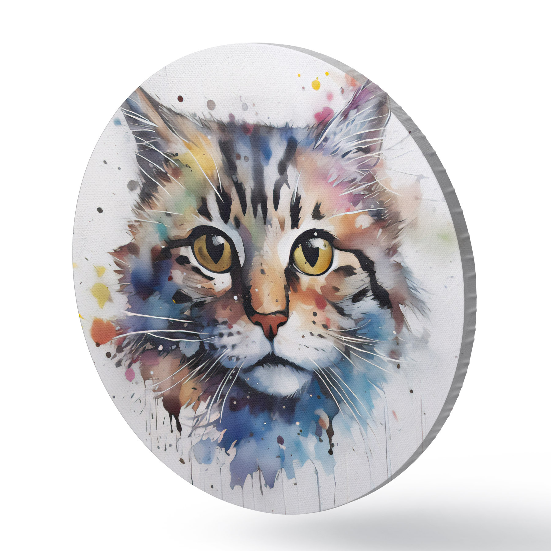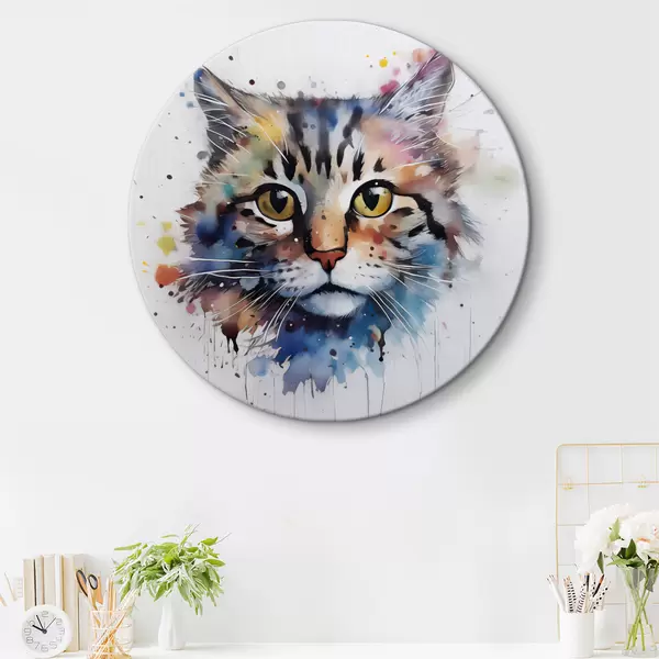 Apaļas gleznas Kaķis, kaķu dzimtas dzīvnieki un krāsas r32314