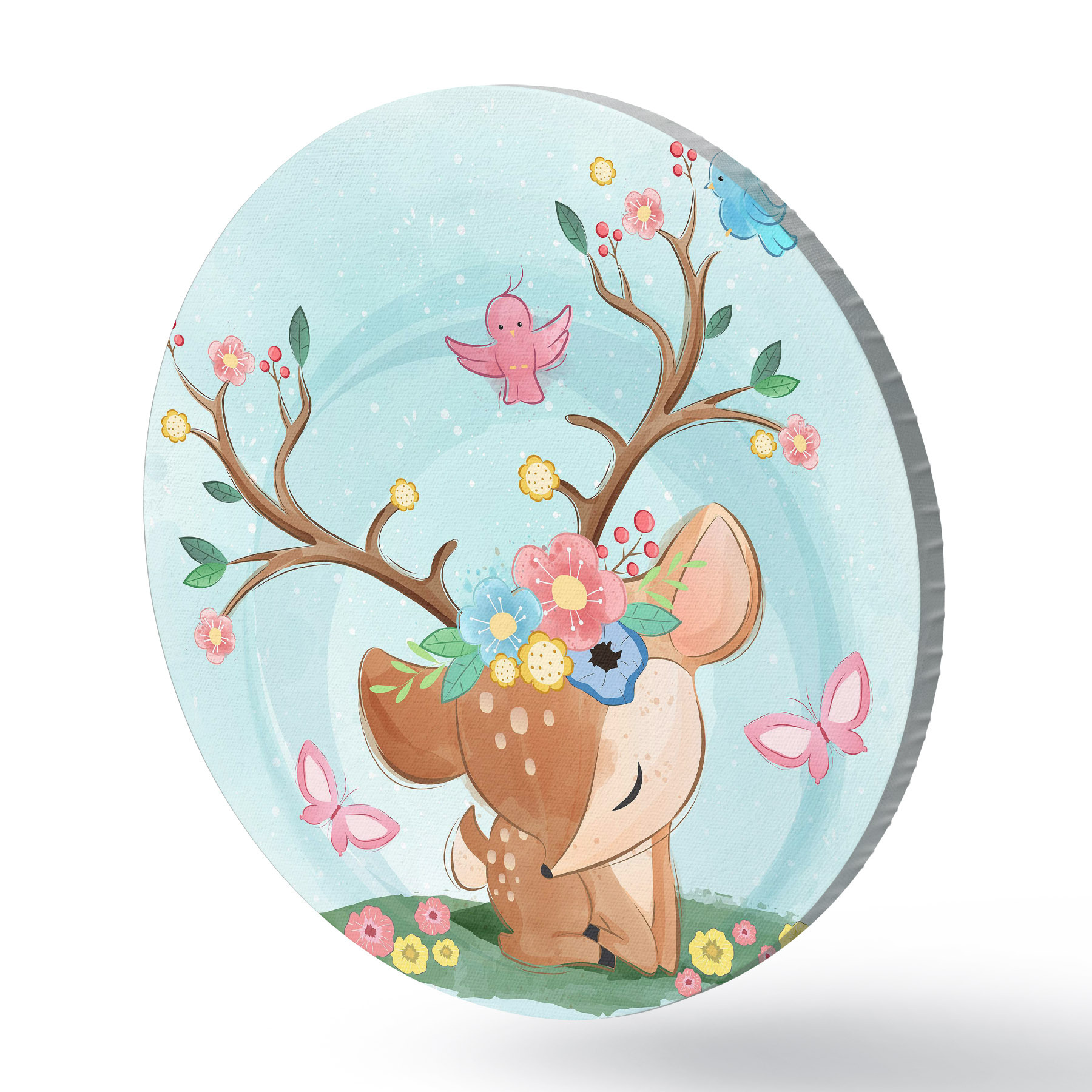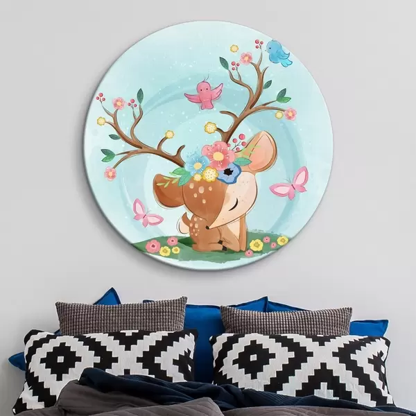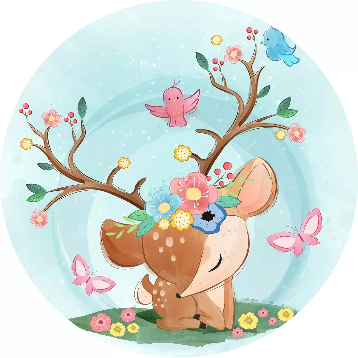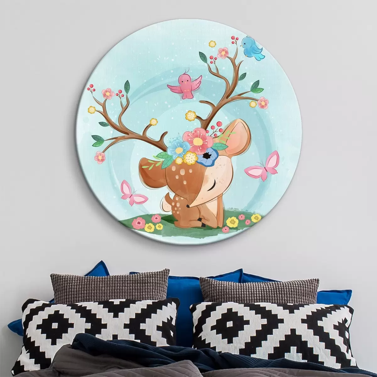 Apaļas gleznas Gudrs briedis ar ziediem r32795