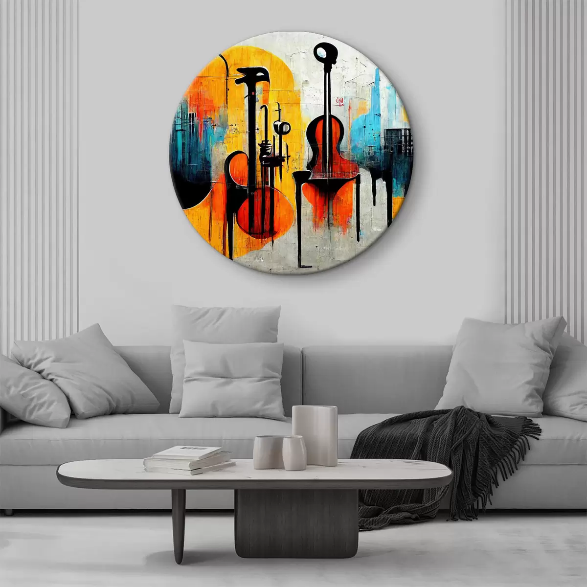 Apaļas gleznas Mūzikas instruments, mākslas krāsas un krāsas r33044