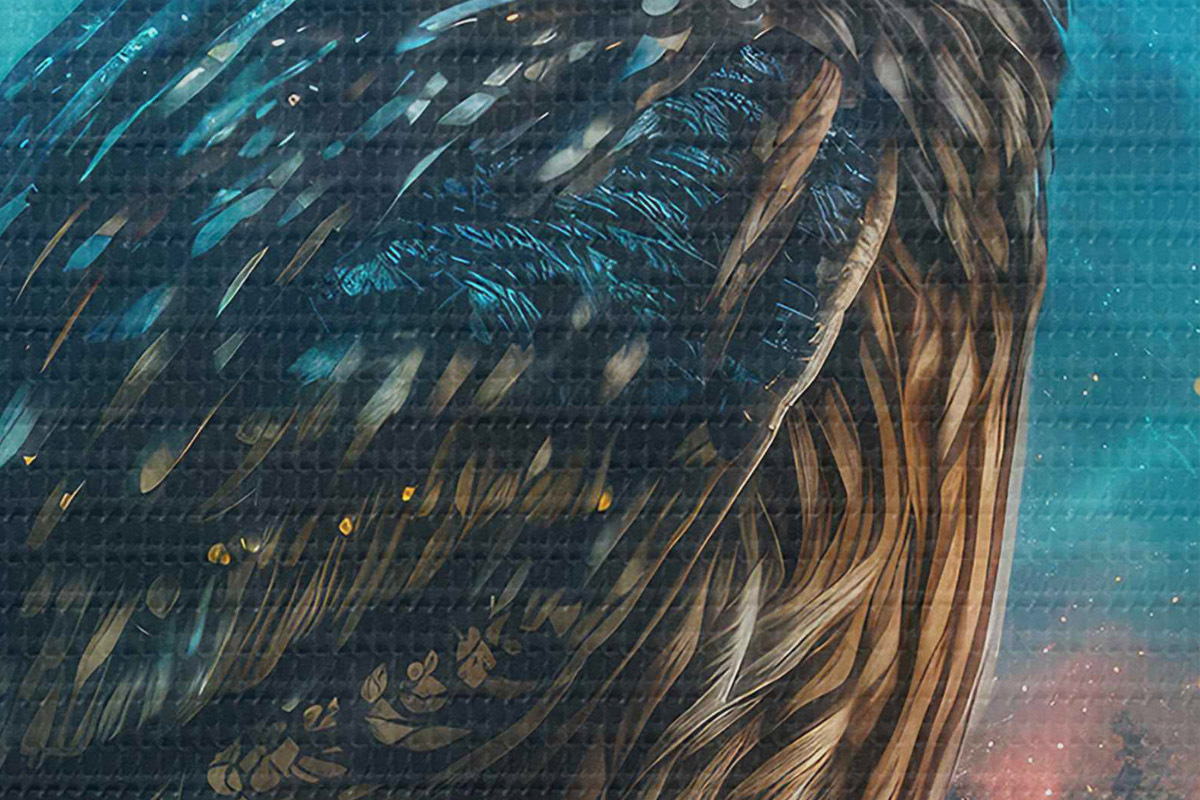 Smalkais diegu pinums uz šī audekla atgādina profesionālu mākslinieku audeklu virsmu.