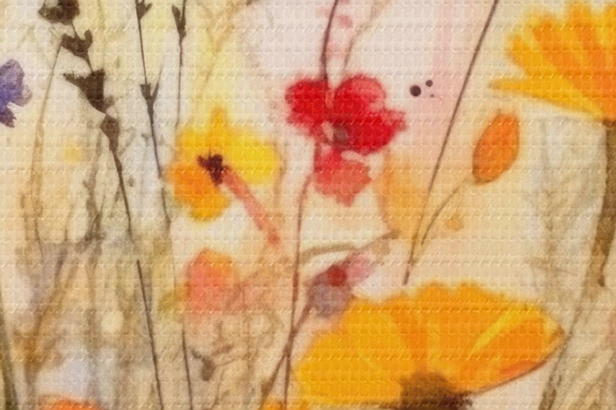 Smalkais diegu pinums uz šī audekla atgādina profesionālu mākslinieku audeklu virsmu.