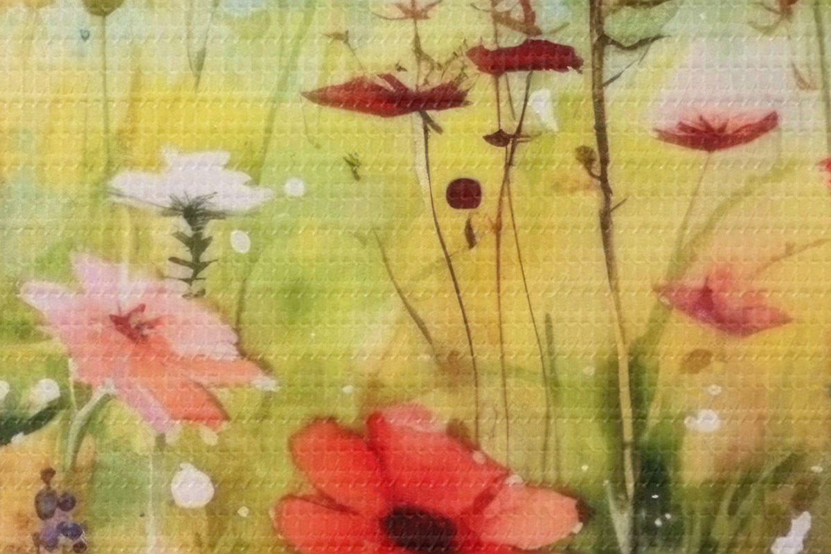 Smalkais diegu pinums uz šī audekla atgādina profesionālu mākslinieku audeklu virsmu.