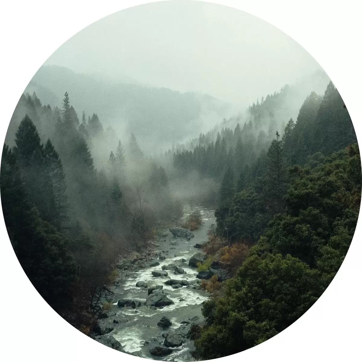 Apaļas gleznas Ūdens, kalni un debesis r33760