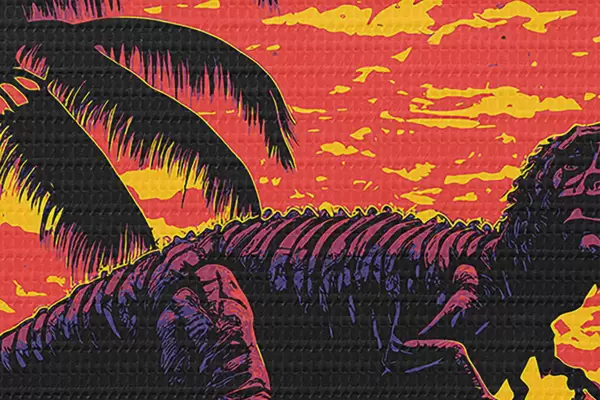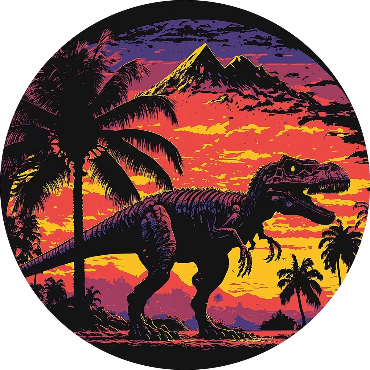 Attēls Dinozaurs saulrieta laikā palmās Nr r33894