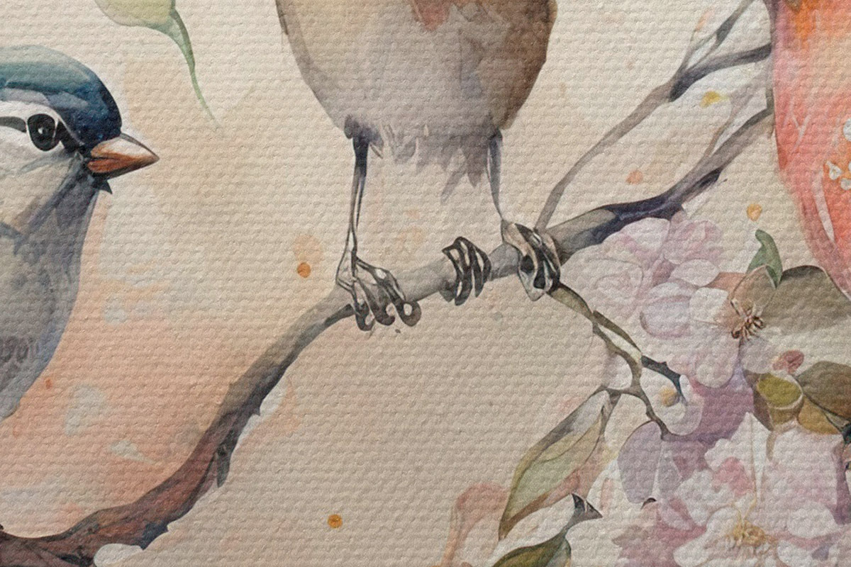Apaļas gleznas Putns, knābis un zariņš r34490