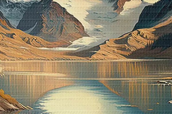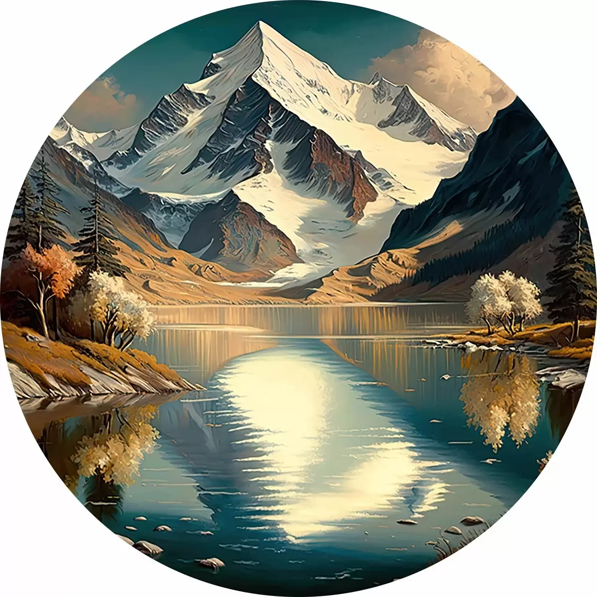 Attēls Kalnu eļļas glezna ar kokiem un sniegu Nr r34631