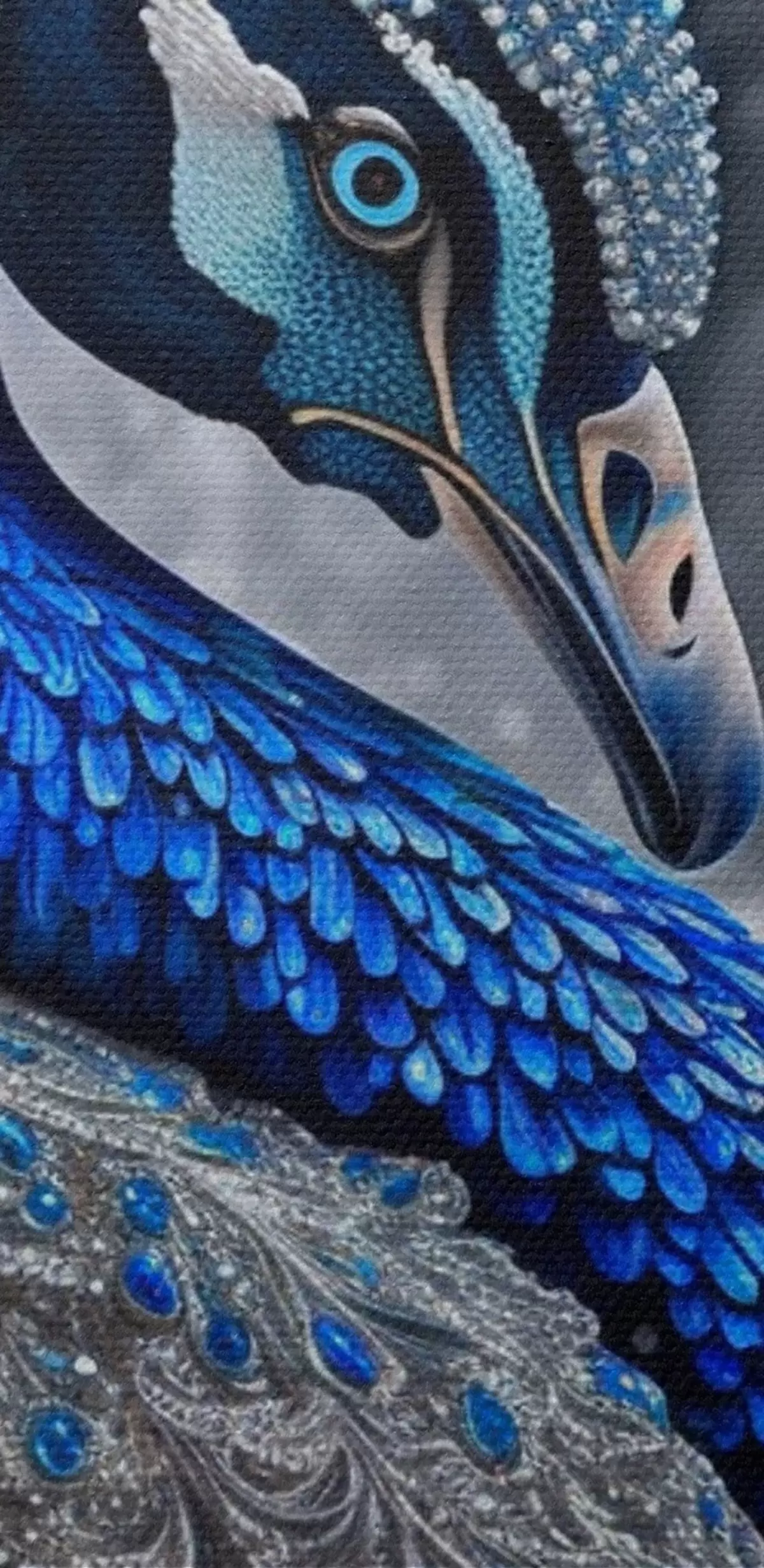 Smalkais diegu pinums uz šī audekla atgādina profesionālu mākslinieku audeklu virsmu.