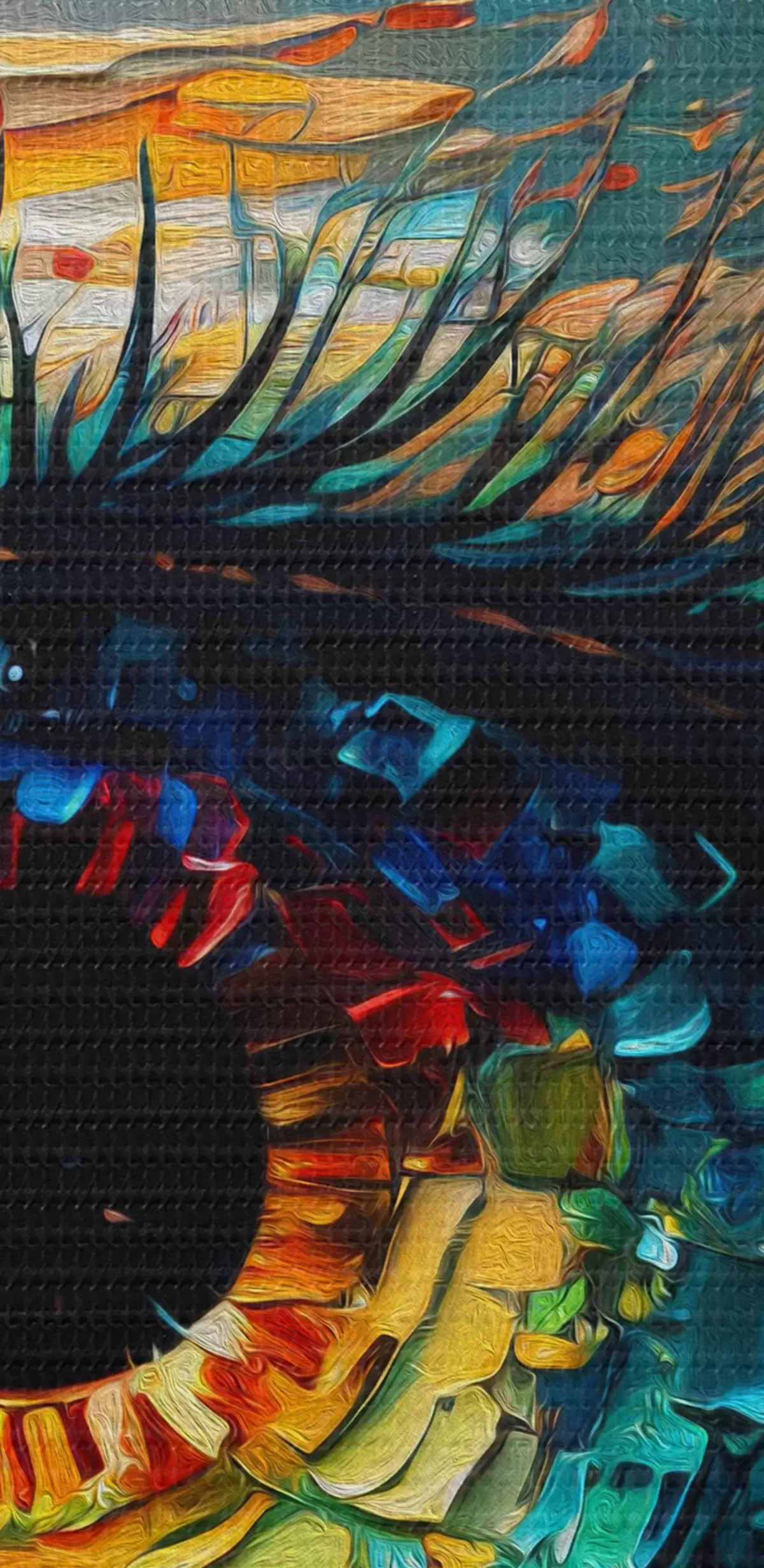 Smalkais diegu pinums uz šī audekla atgādina profesionālu mākslinieku audeklu virsmu.