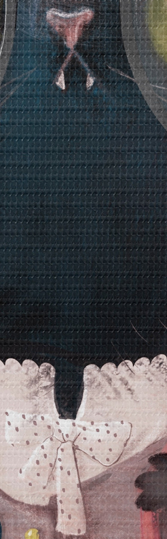 Lai izstieptu audeklu uz nestuvēm, nebojājot attēlu, mēs izmantojam spoguļattēlu.