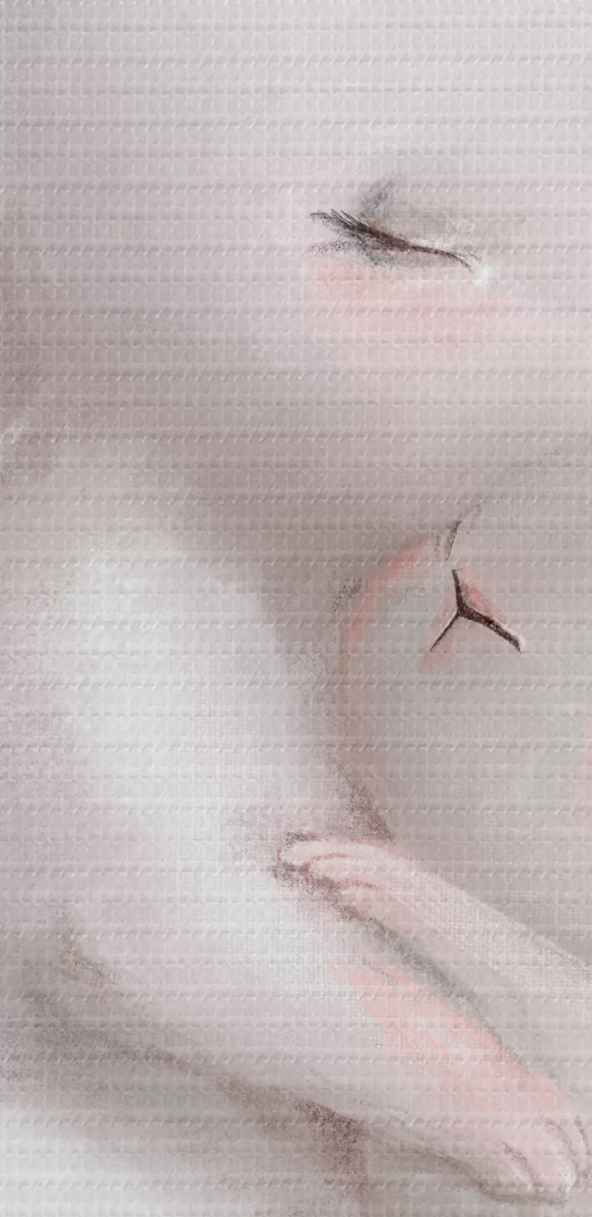 Smalkais diegu pinums uz šī audekla atgādina profesionālu mākslinieku audeklu virsmu.
