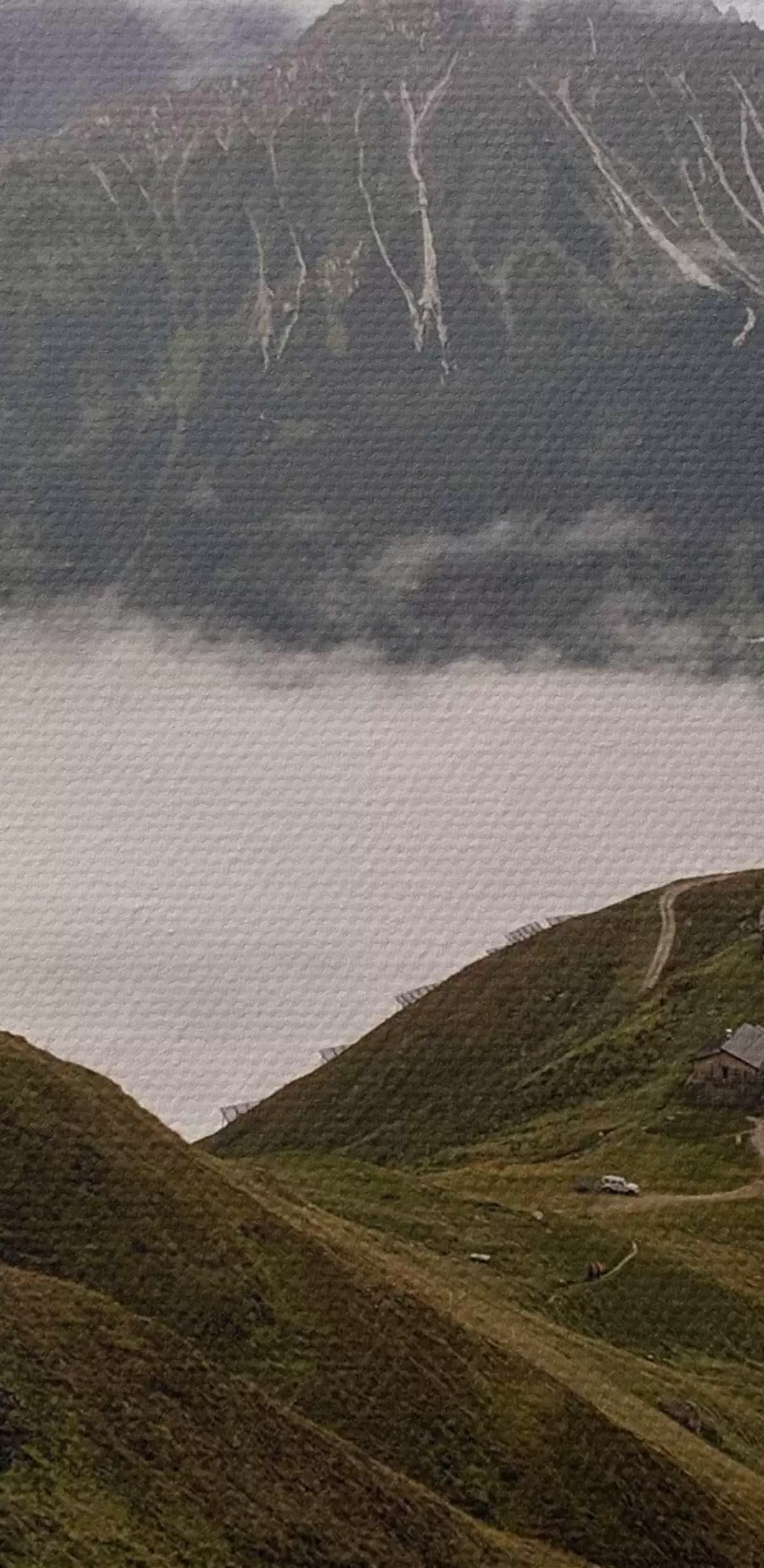 Smalkais diegu pinums uz šī audekla atgādina profesionālu mākslinieku audeklu virsmu.