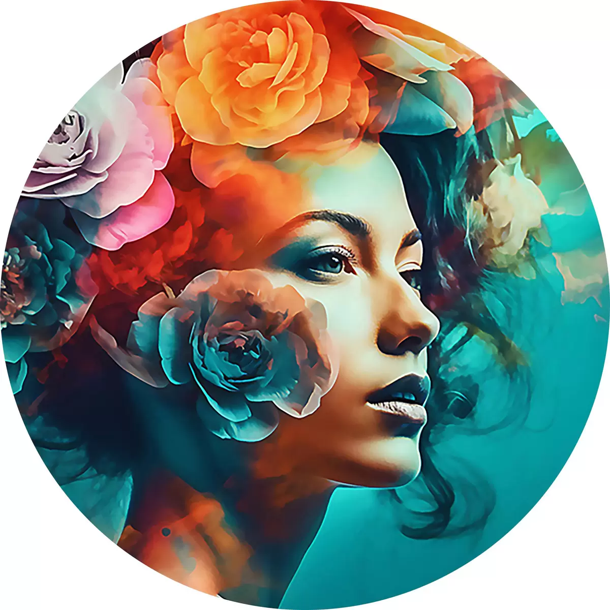 Apaļas gleznas Jauka sieviete ar ziediem r35366