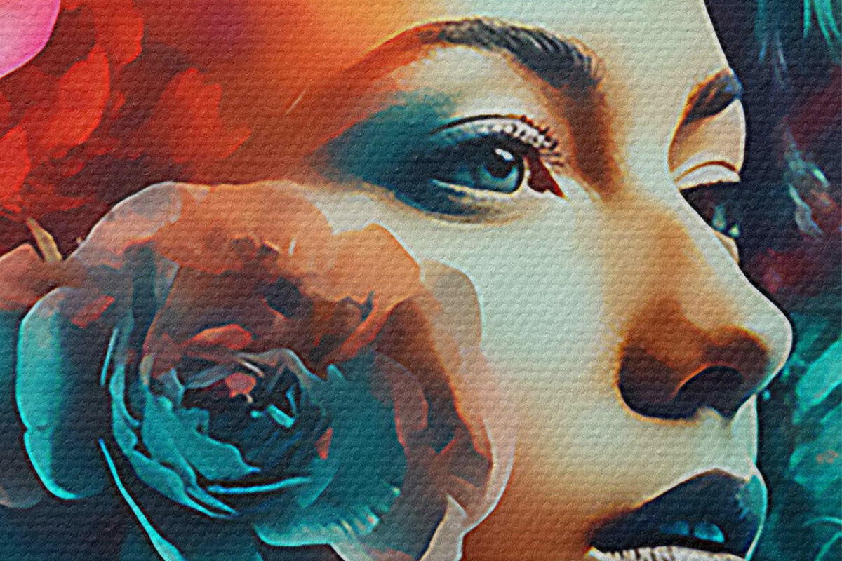 Smalkais diegu pinums uz šī audekla atgādina profesionālu mākslinieku audeklu virsmu.