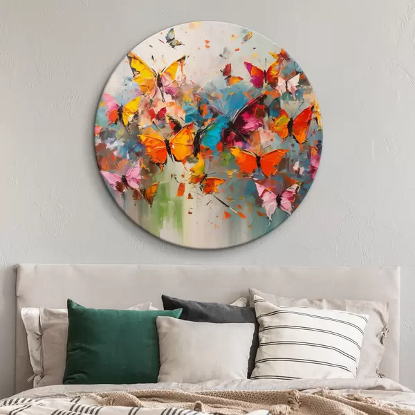 Apaļas gleznas Daudz krāsainu tauriņu r35376