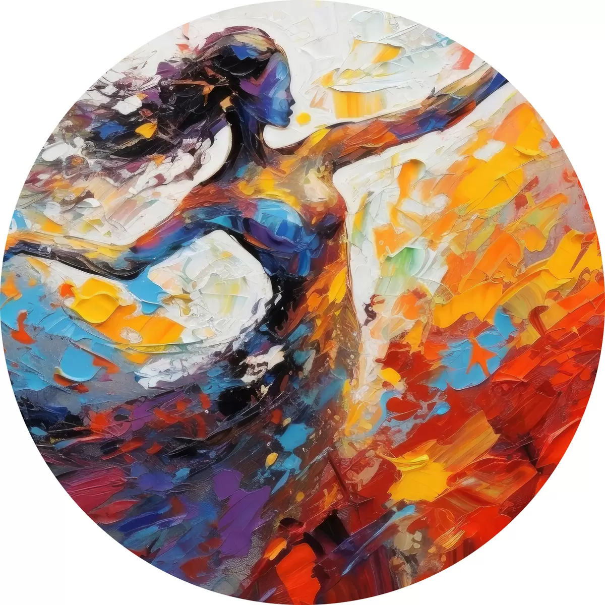 Apaļas gleznas Spilgta sieviete dejā impresionisma stilā r35379