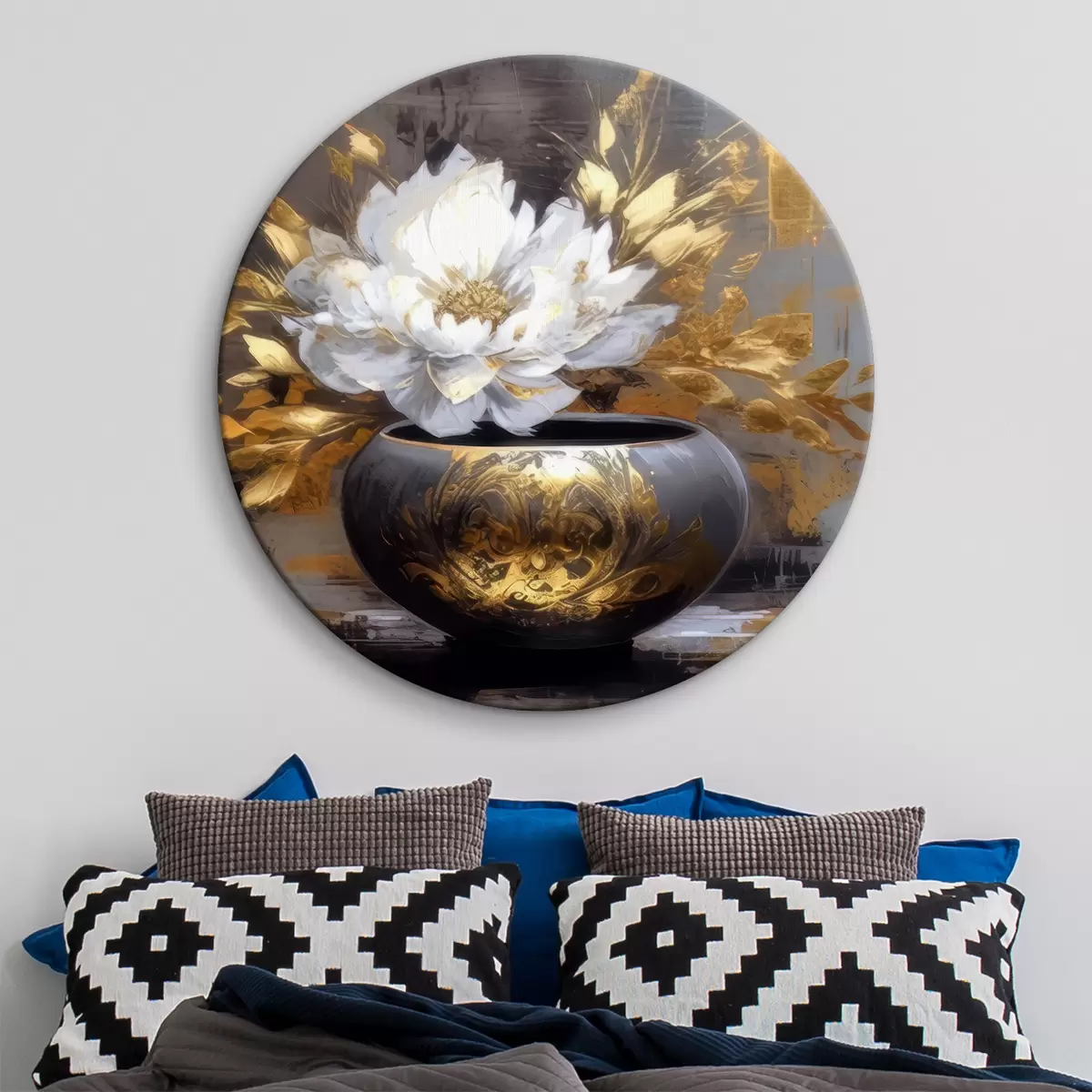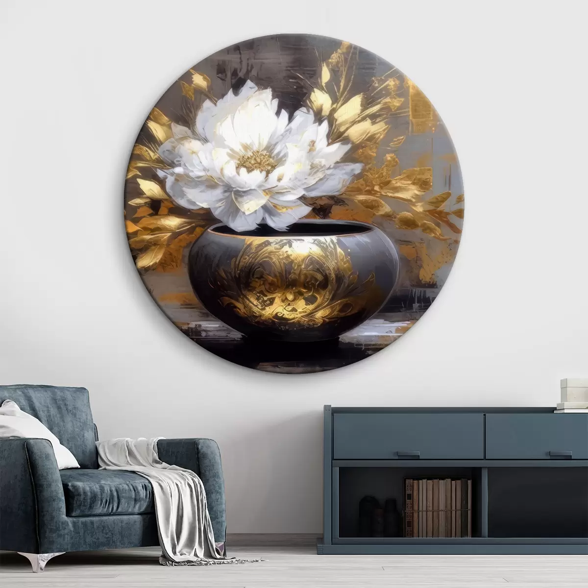 Apaļas gleznas Liela vāze ar milzīgu baltu ziedu r35388