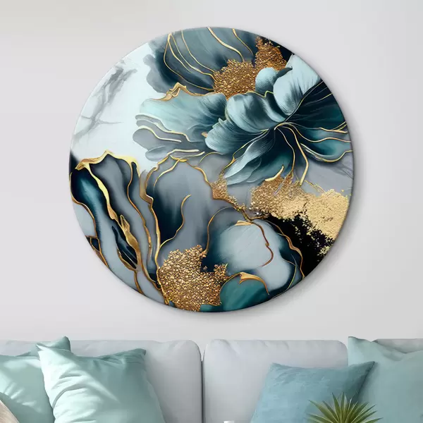 Apaļas gleznas Zaļš, lazurīns un botānika r35447