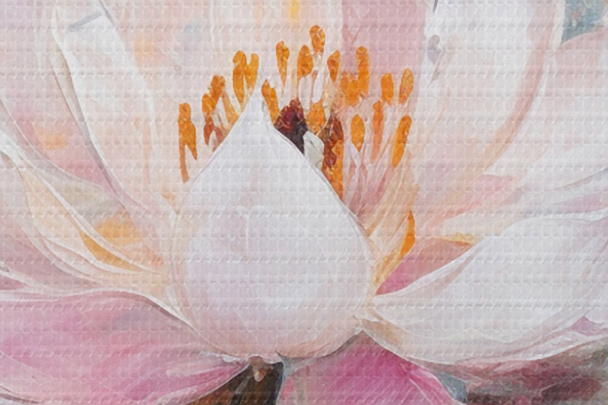 Smalkais diegu pinums uz šī audekla atgādina profesionālu mākslinieku audeklu virsmu.