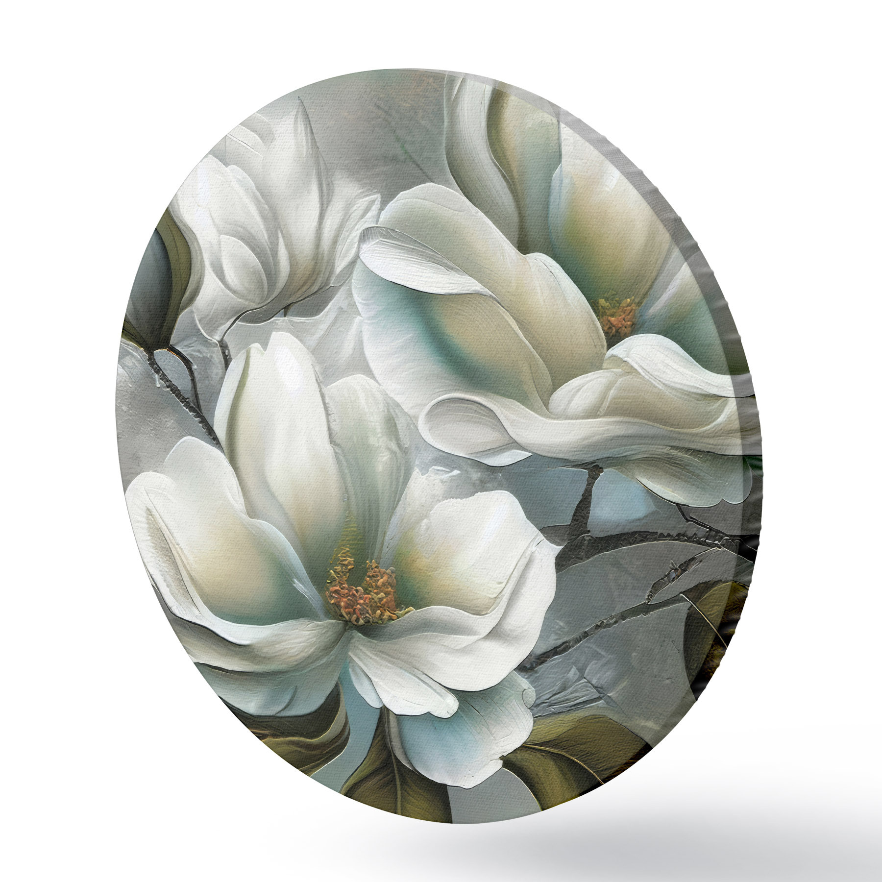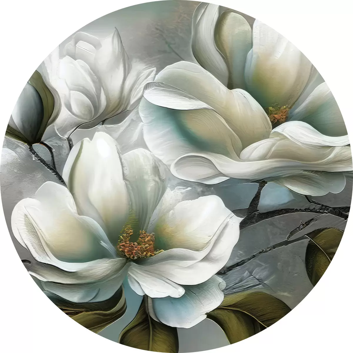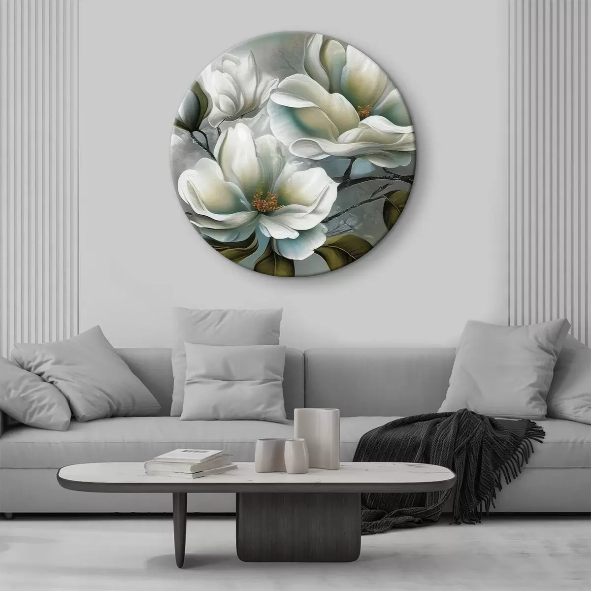Apaļas gleznas Balti ziedi uz zila fona r35494