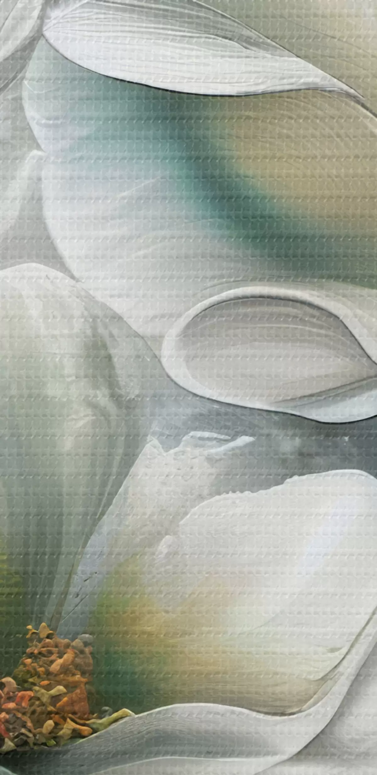 Smalkais diegu pinums uz šī audekla atgādina profesionālu mākslinieku audeklu virsmu.