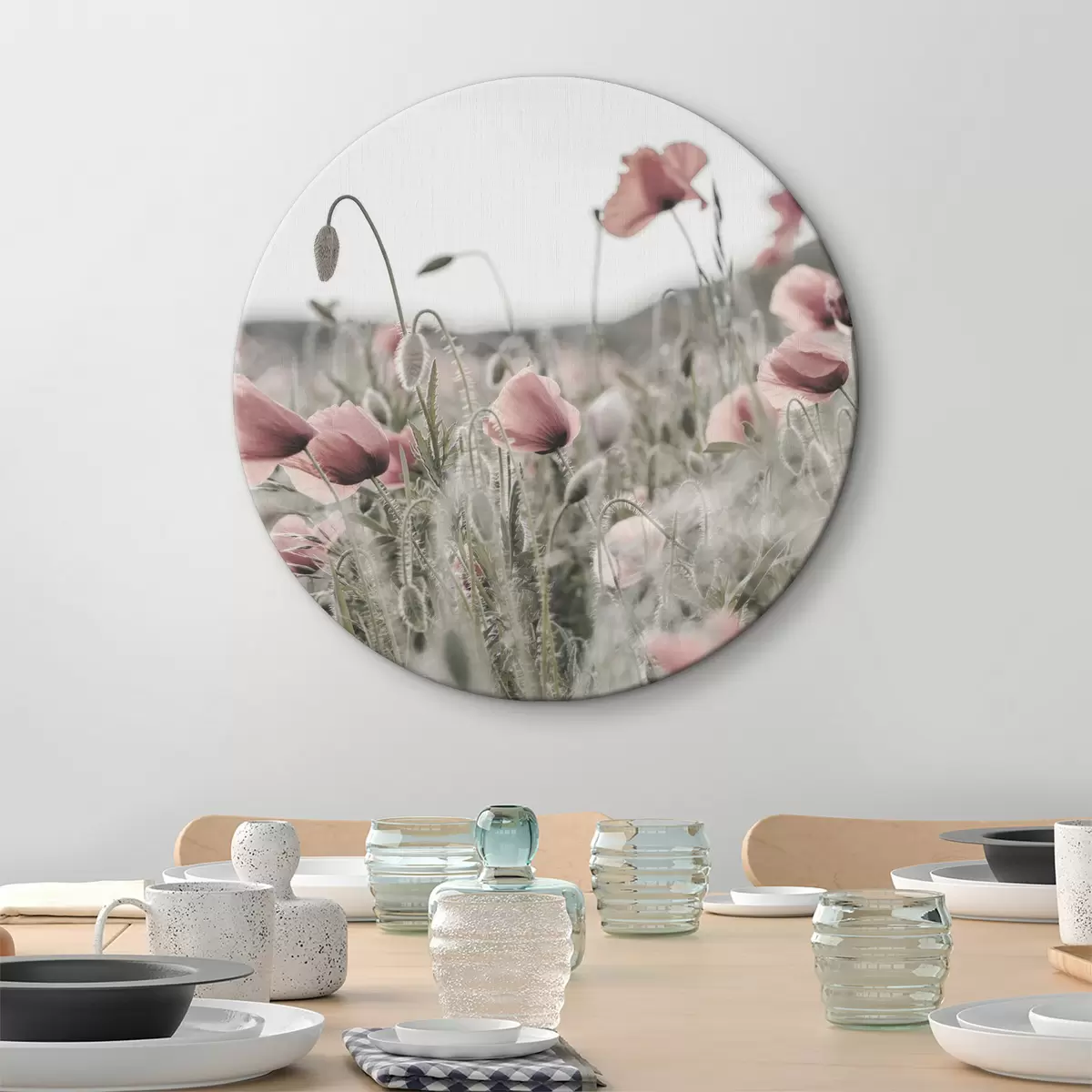 Apaļas gleznas Magoņu glezniecība pieklusinātās krāsās r35592