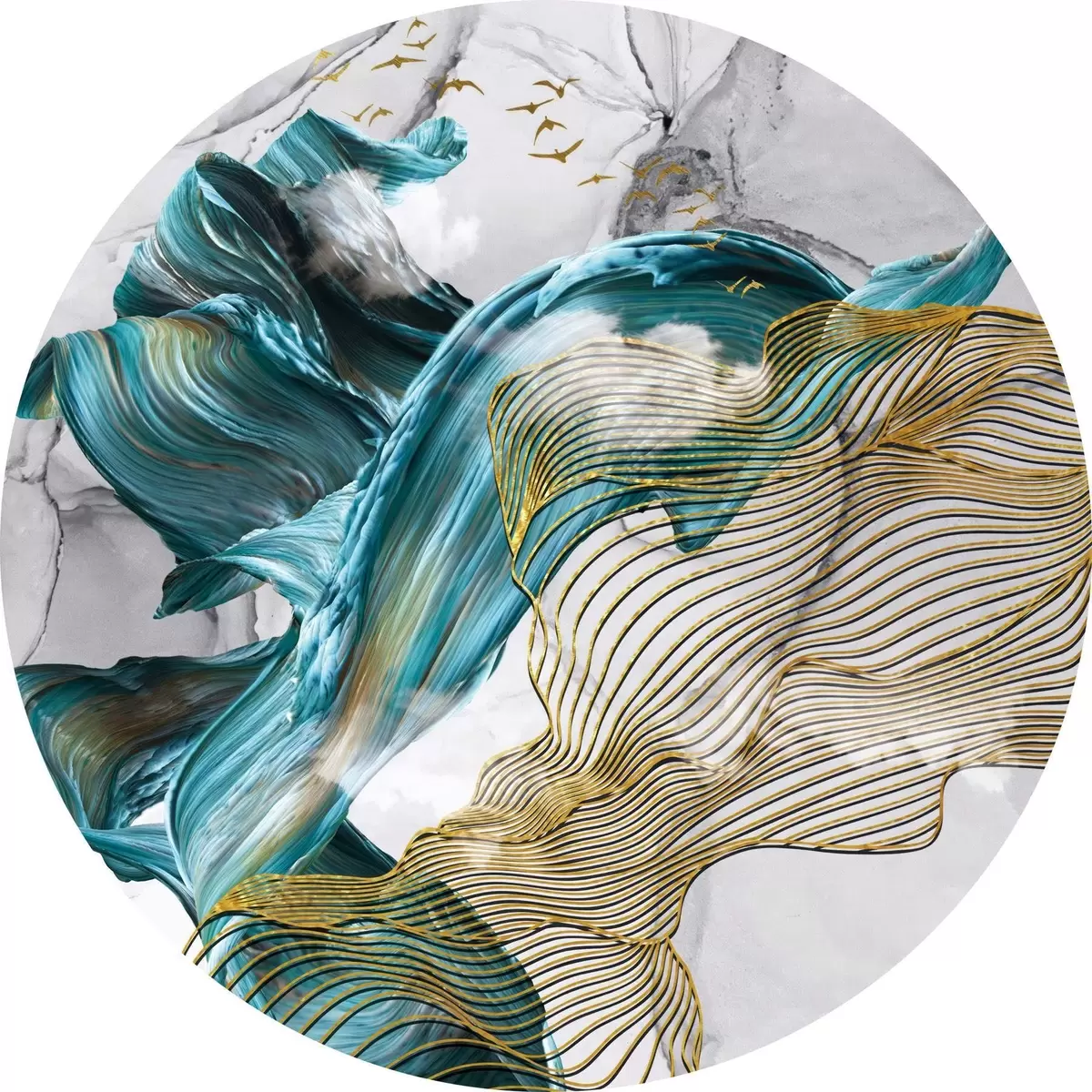 Apaļas gleznas Abstraktie viļņi ar tējas krāsas un plūstošu līniju rakstiem r35797