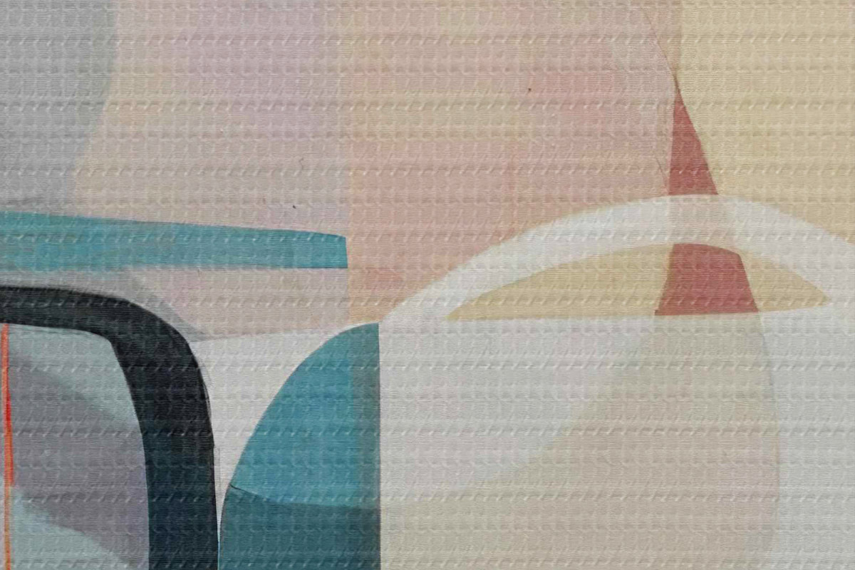 Smalkais diegu pinums uz šī audekla atgādina profesionālu mākslinieku audeklu virsmu.