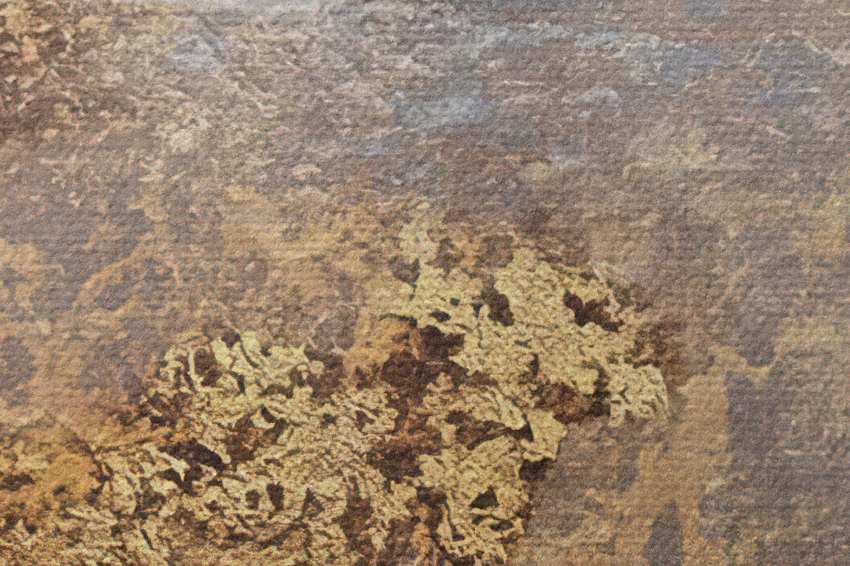 Smalkais diegu pinums uz šī audekla atgādina profesionālu mākslinieku audeklu virsmu.